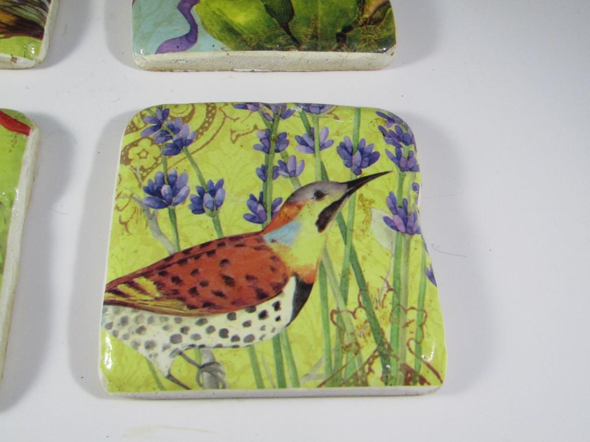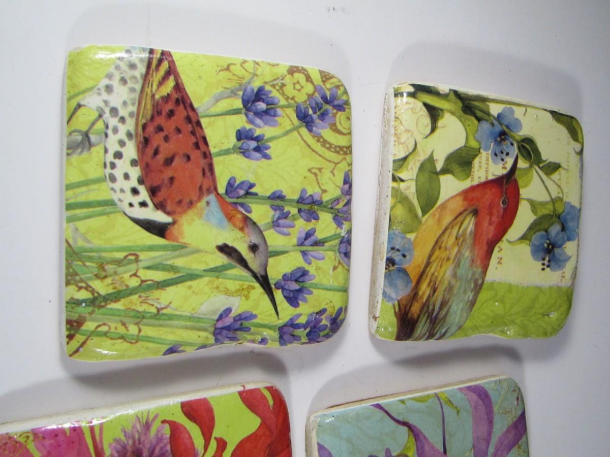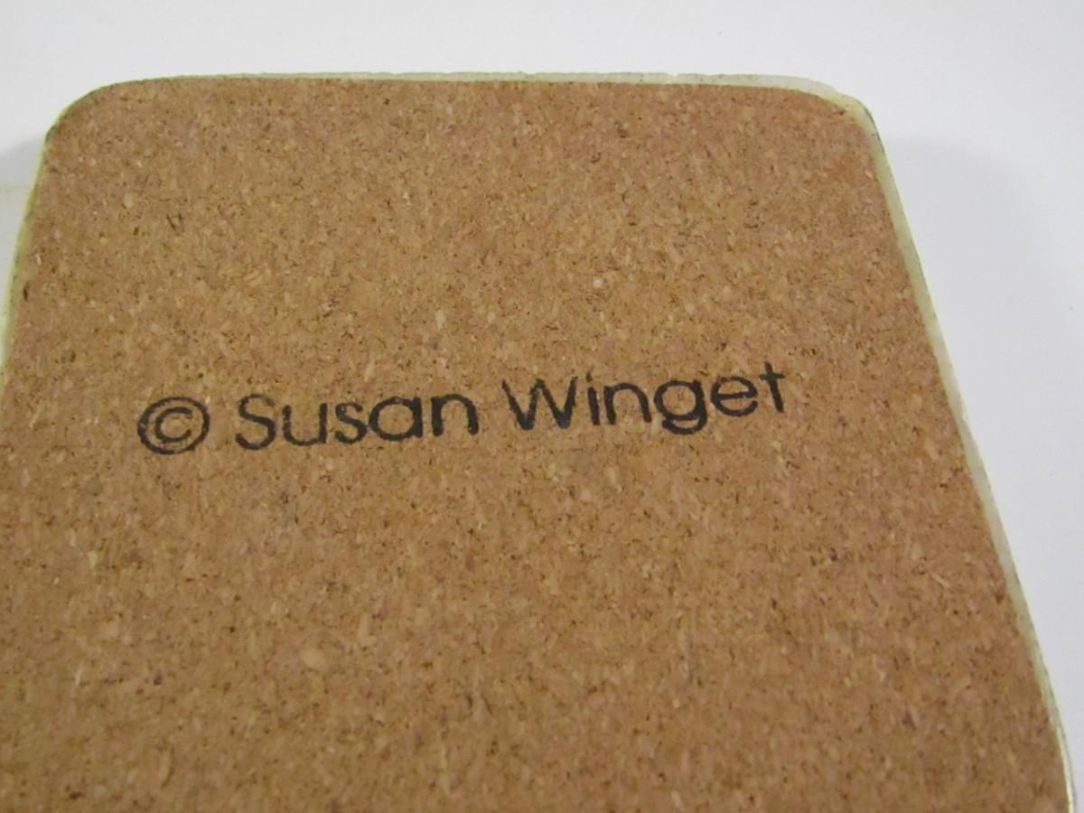 Set of Four Hand Painted Ceramic Tile Coasters by Artist Susan Winget