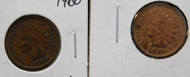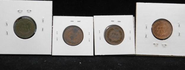 Set of Four Indian Head US Mint One Cent Pieces 1896, 1897, 1900, 1901 Circulated G/VG