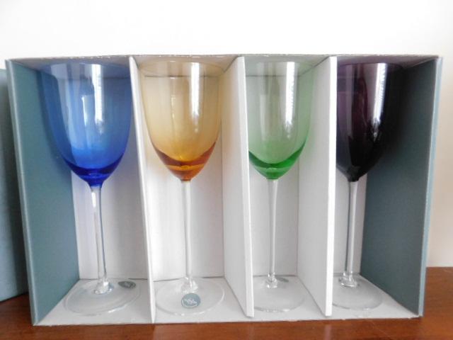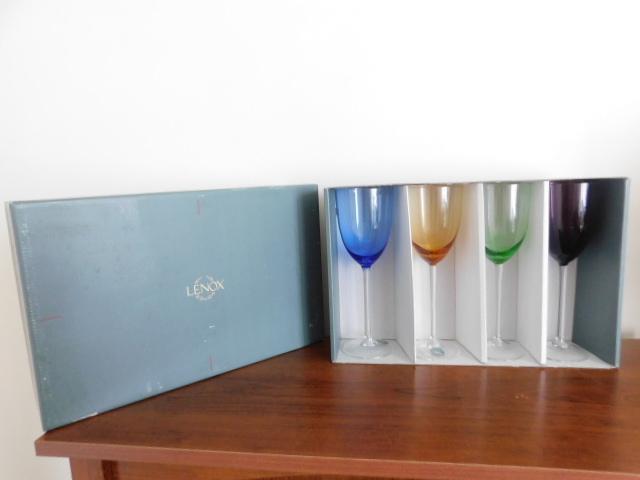 Set of Four Lenox Color Crystal Stemmed Wine Glasses in Original Box