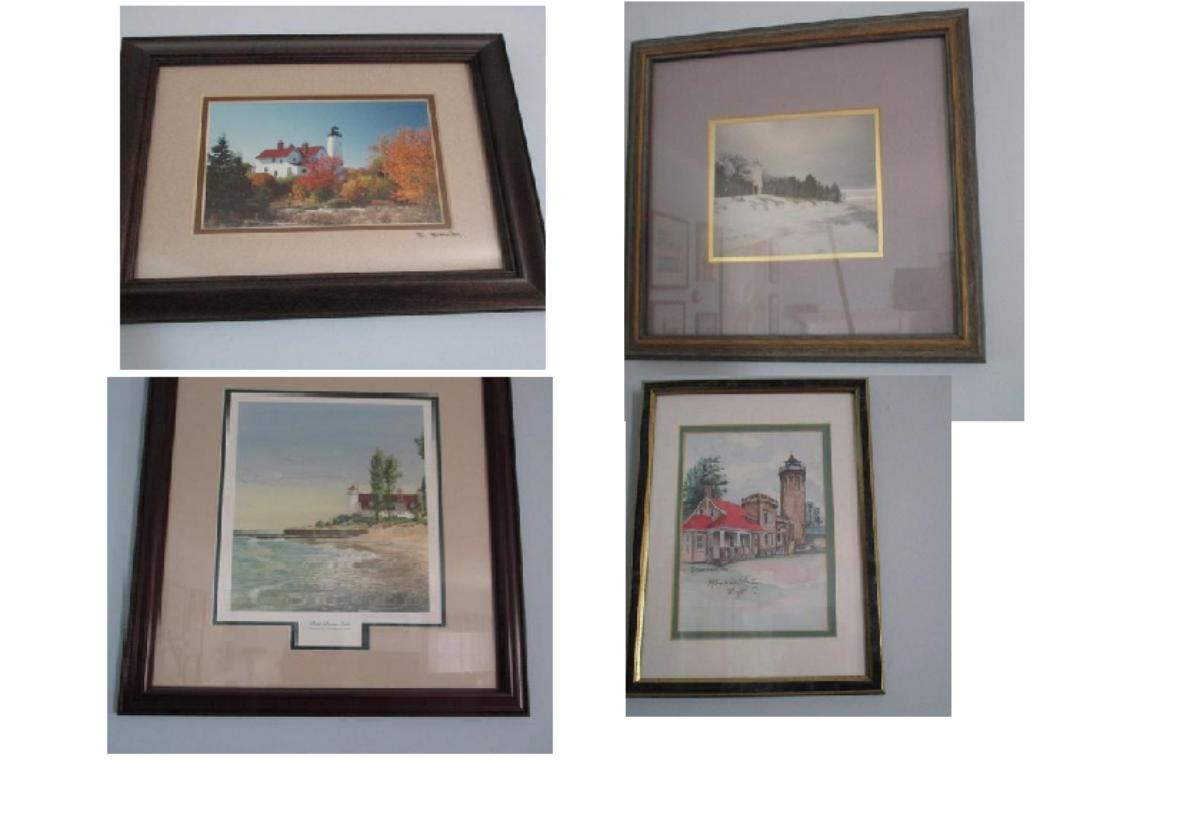 Set of Four Lighthouse Framed Artwork Photos and Prints-A. Various size frames from 10" up to 22"