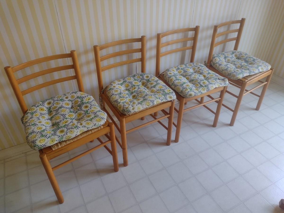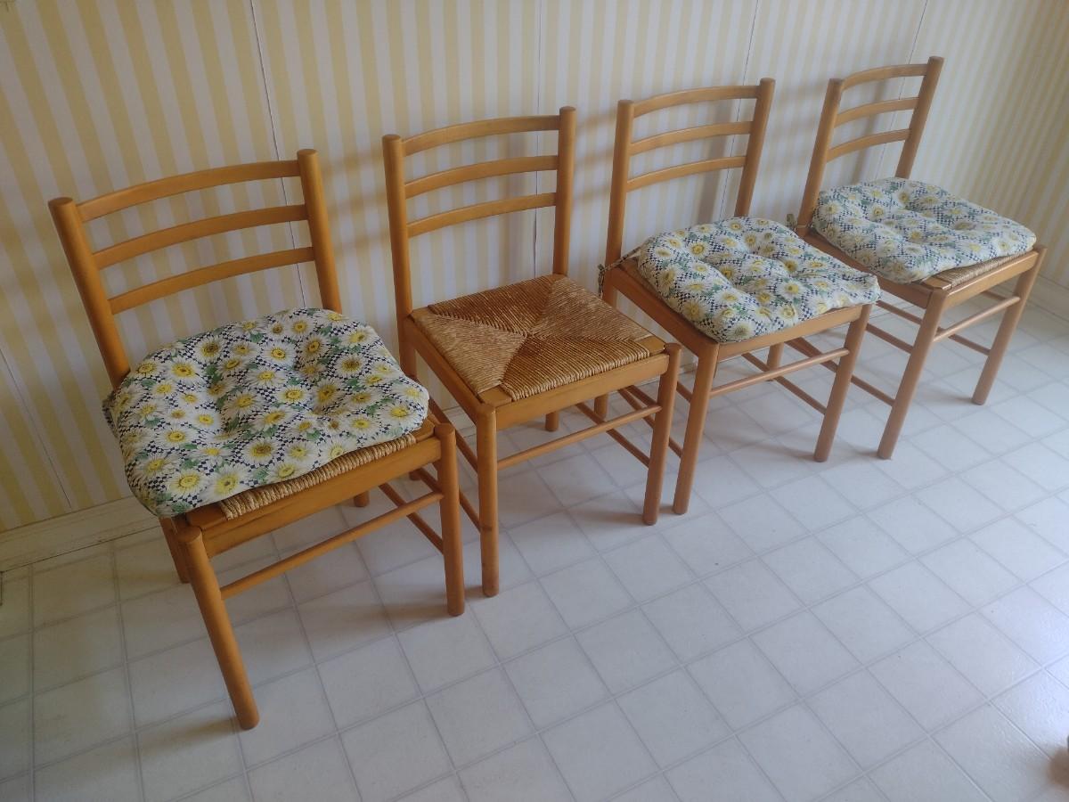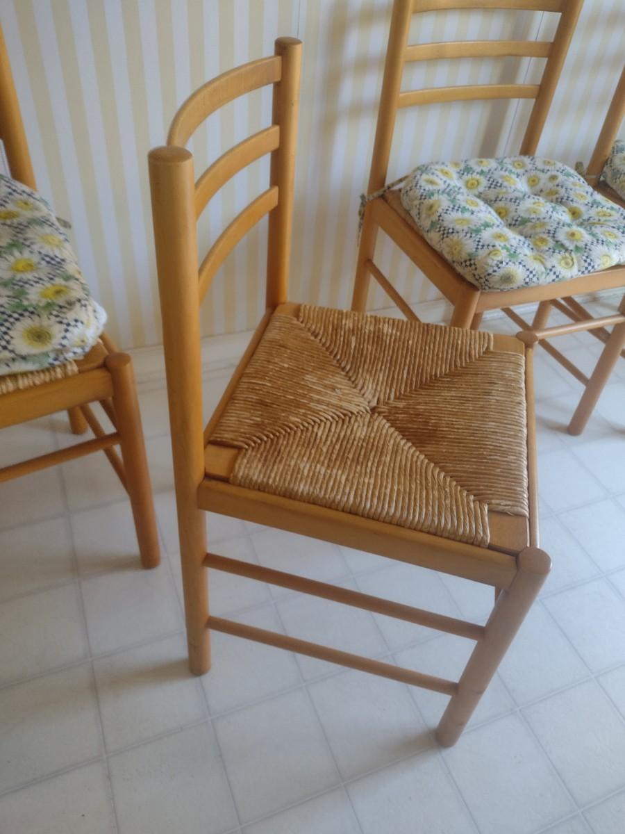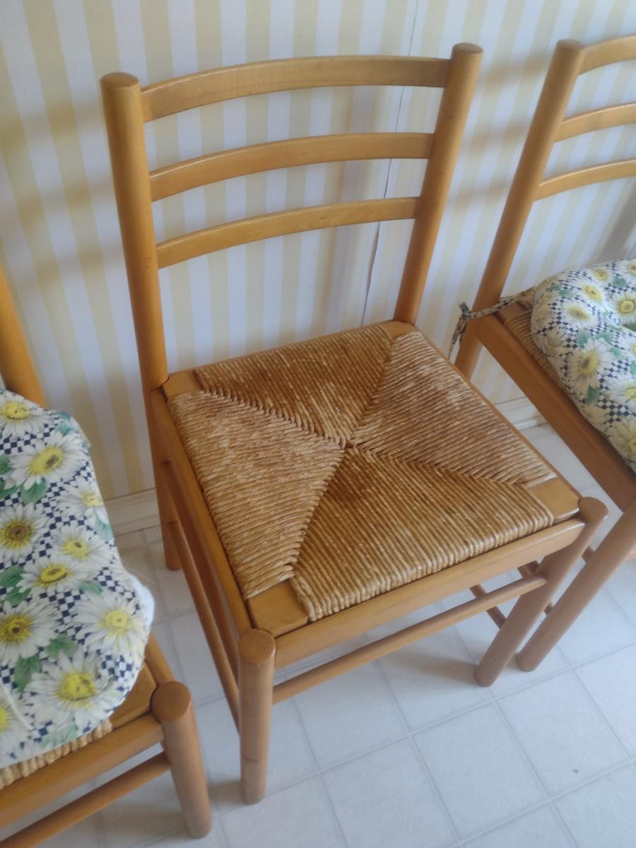 Set of Four Maple Wood Ladder Back Chair with Woven Seat