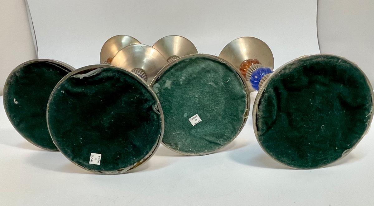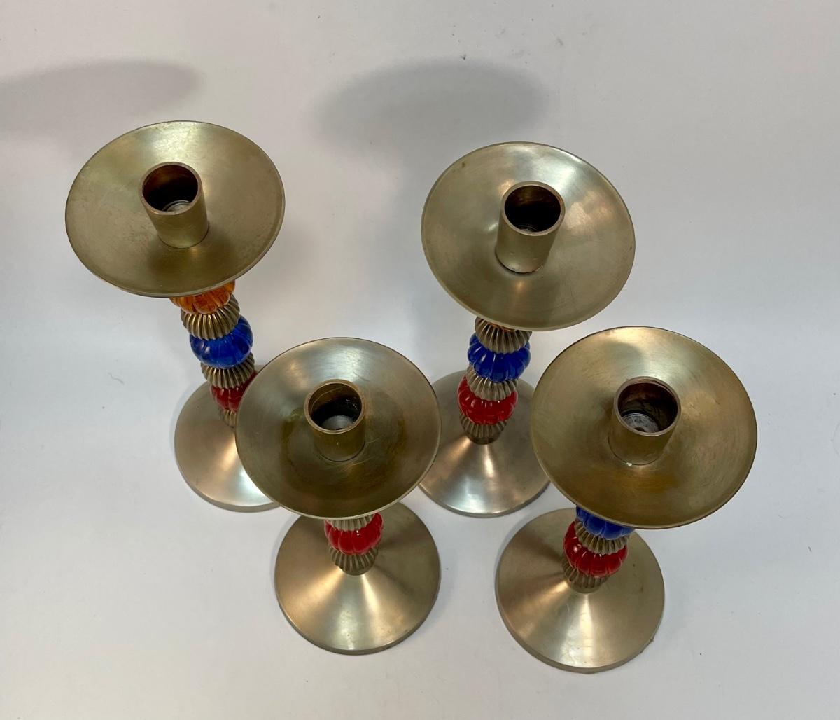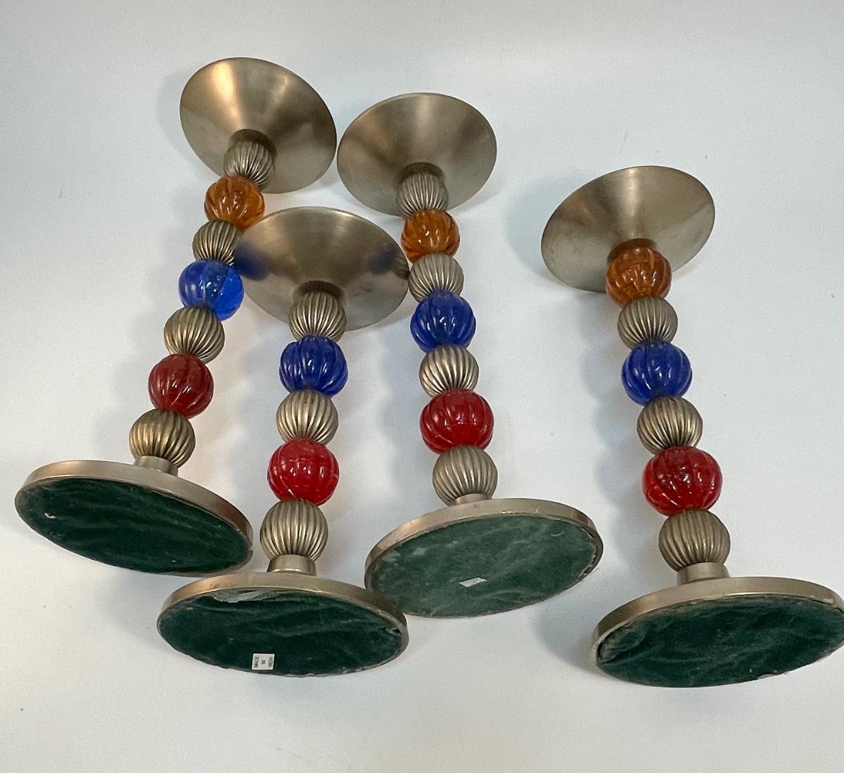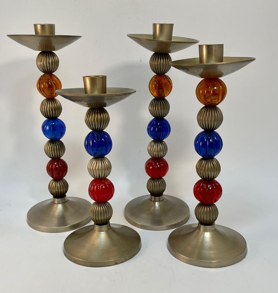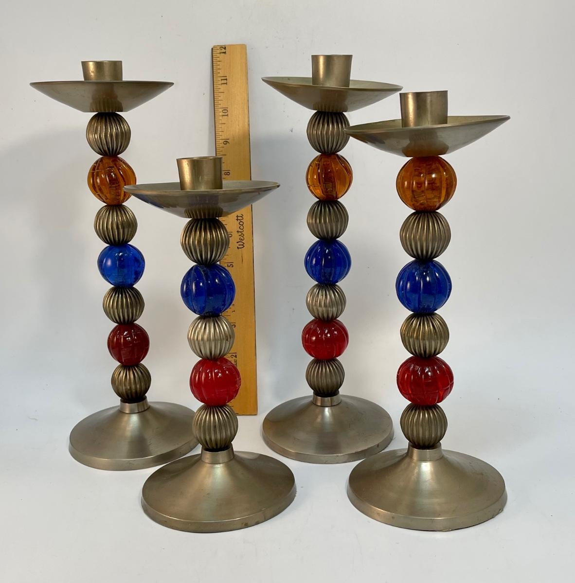 Set of Four Metal and Red, Blue, and Gold Beaded Candle Holders