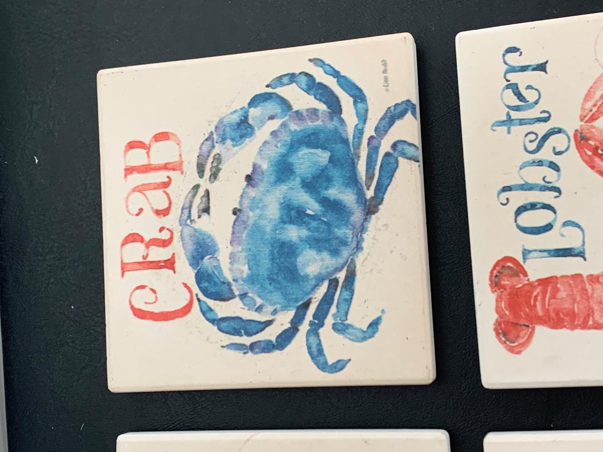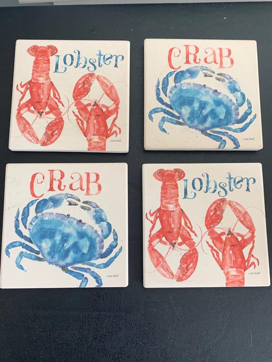 Set of FOUR Nautical Drink Coasters Crab / Lobster