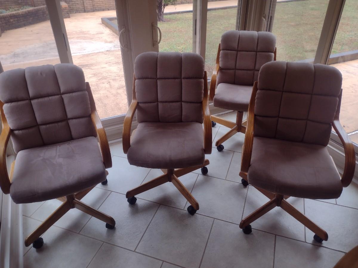 Set of Four Oak Frame Fabric Upholstered Dining Chairs on Castors Choice A