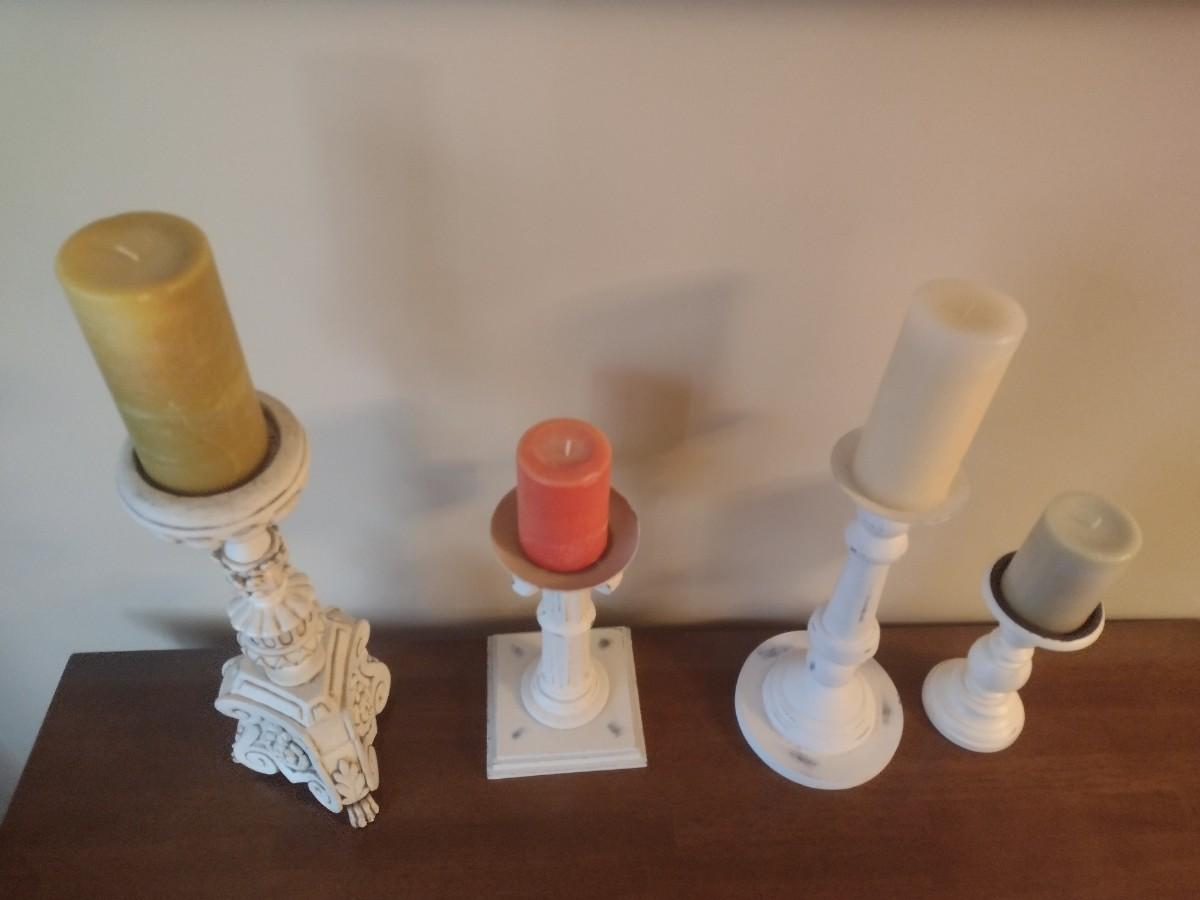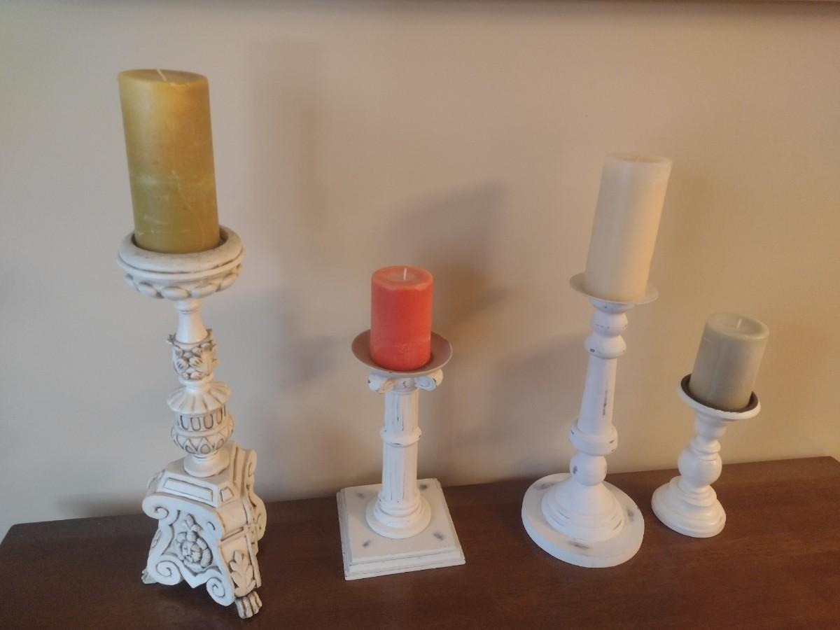 Set of Four Ornate Wood and Composite Decorative Candle Holders
