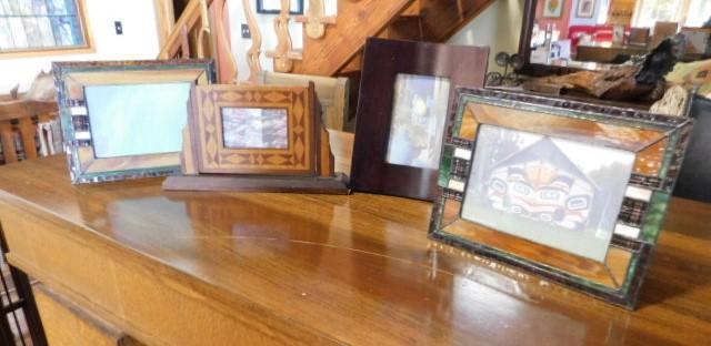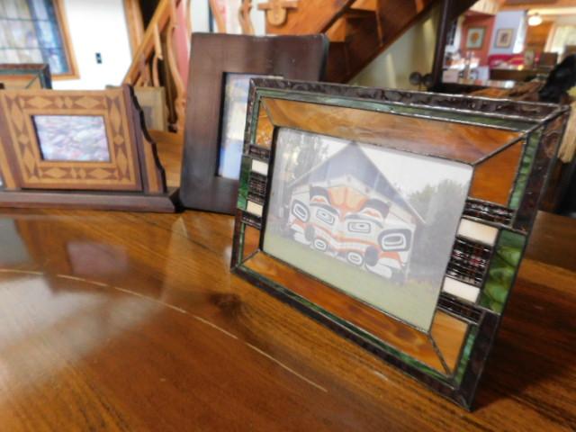 Set of Four Pictures Frames 2 are Stained Glass and 2 are Wood