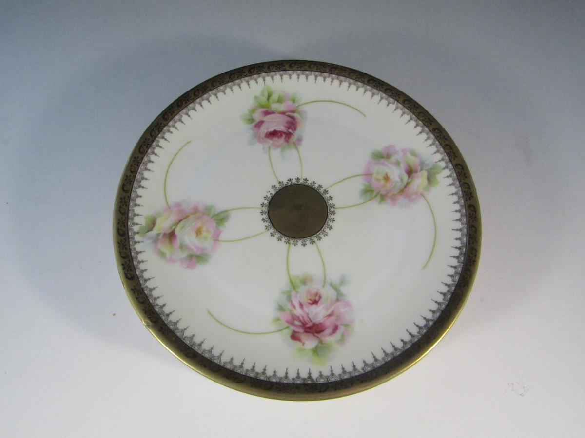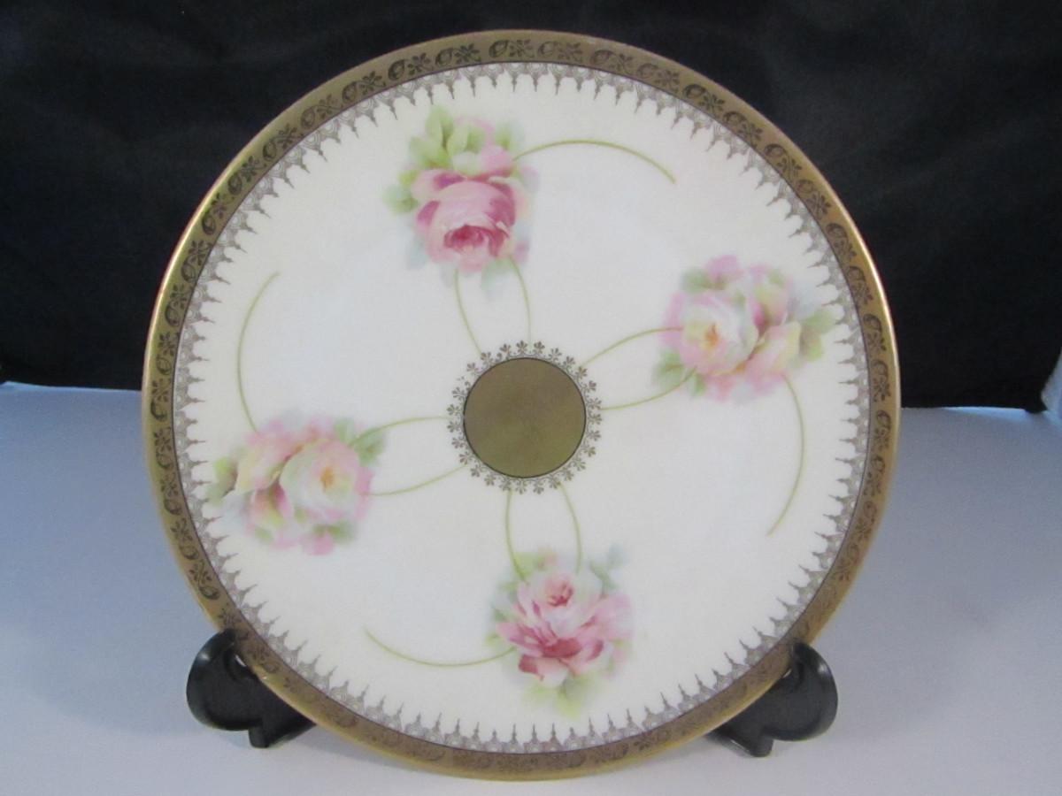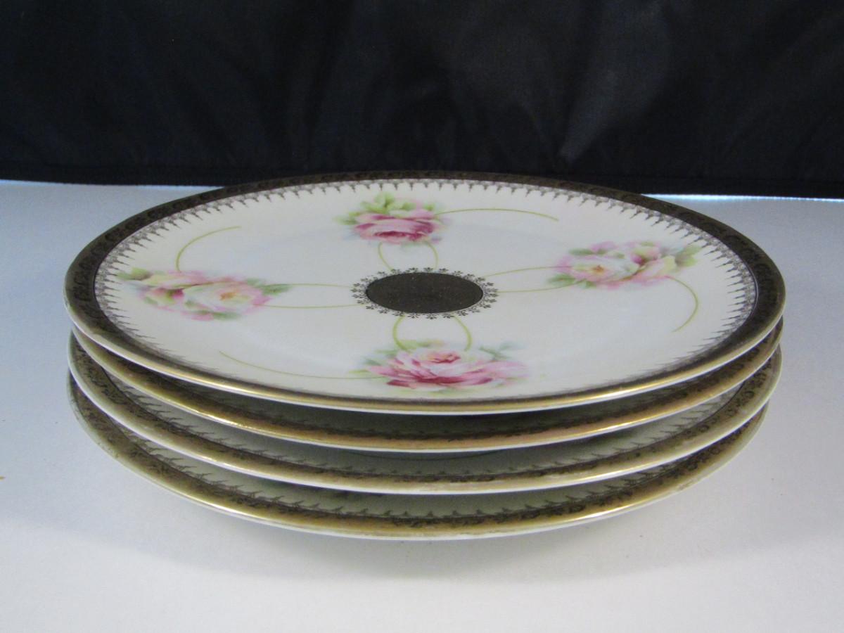 Set of Four PM Bavaria Plates- Hand Painted Roses with Gilded Edge- Approx 7 1/2"