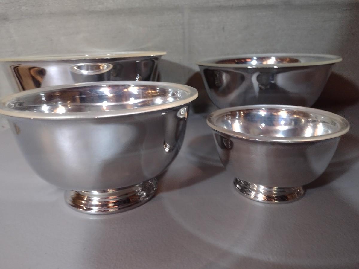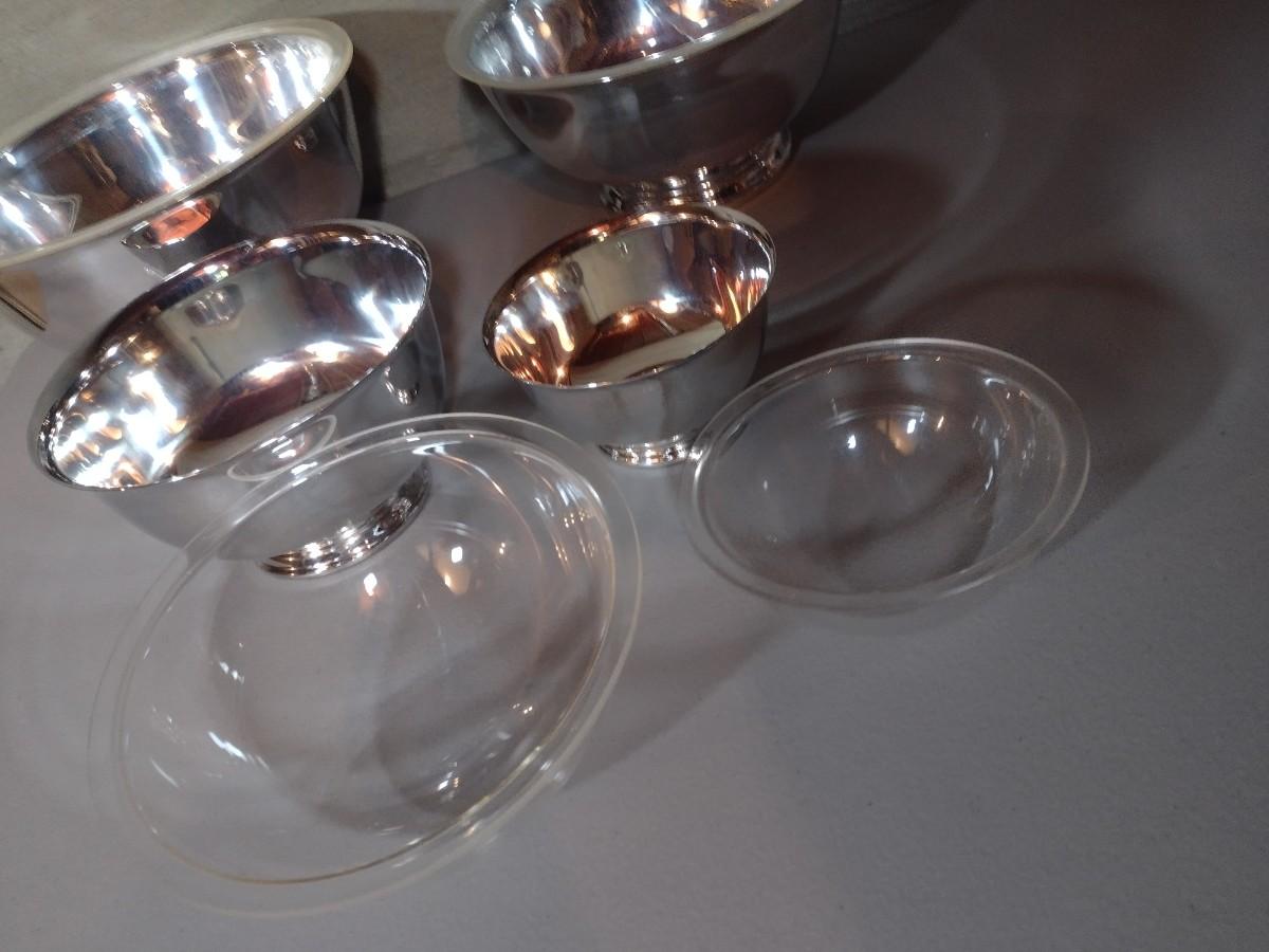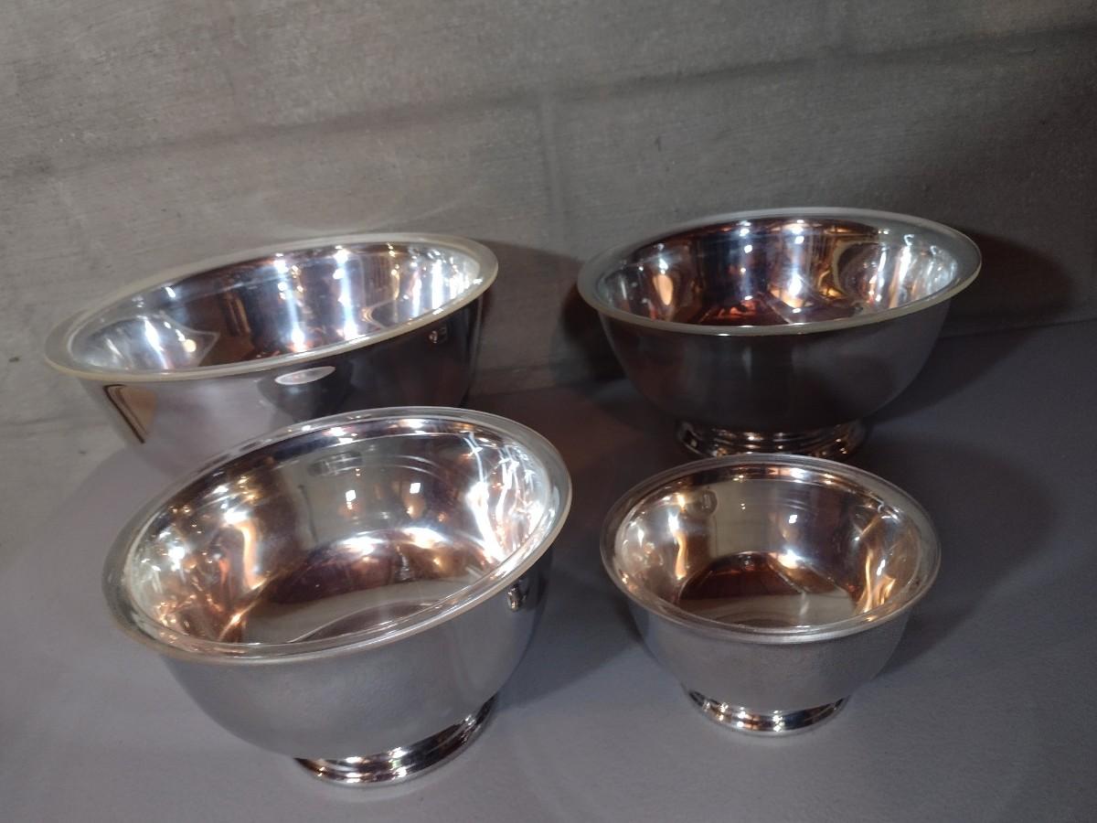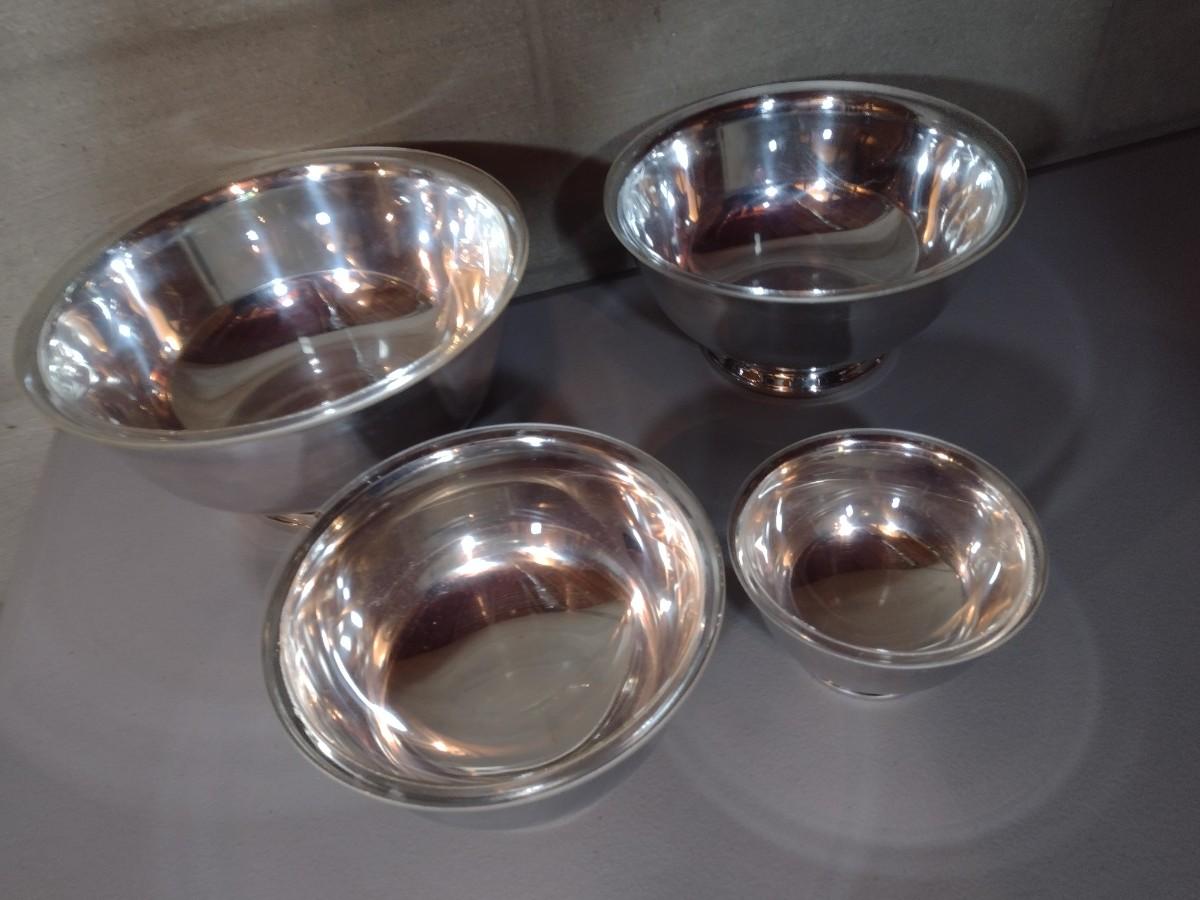 Set of Four Polished Silver Plate Bowls with Plastic Liners Gorham and Other
