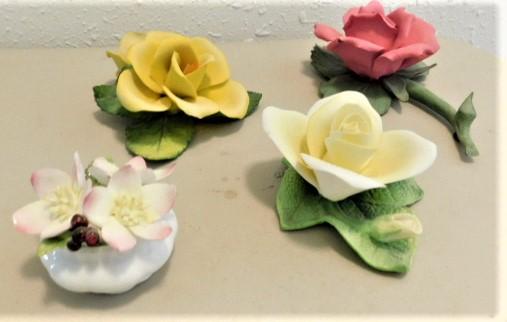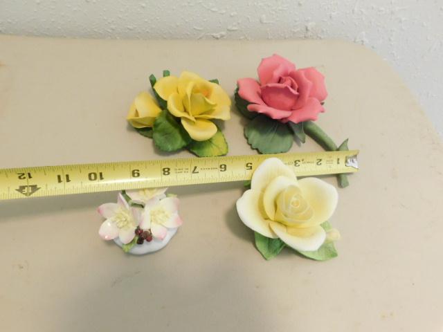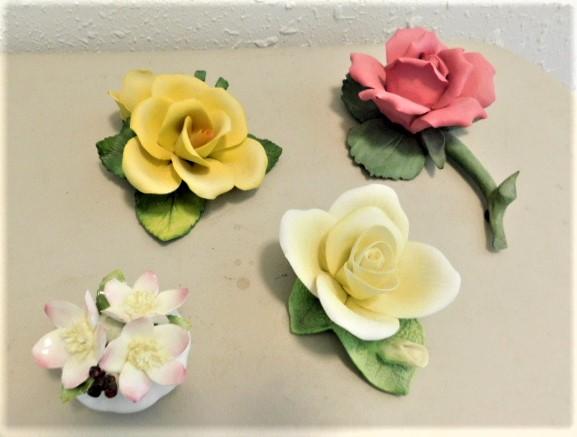 Set of Four Porcelain Italian Capodimonte Flowers and Like Style Items