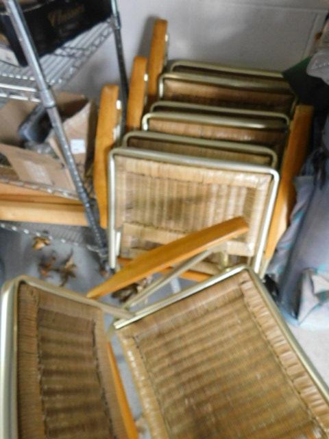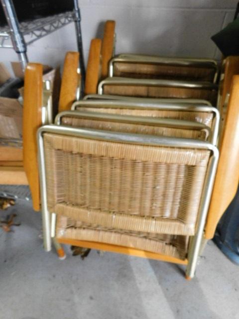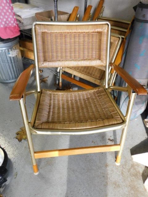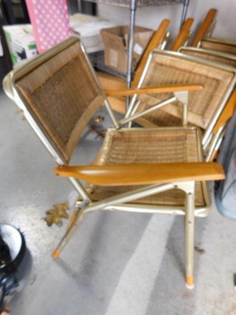 Set of Four Rush and Maple Wood Folding Patio Chairs