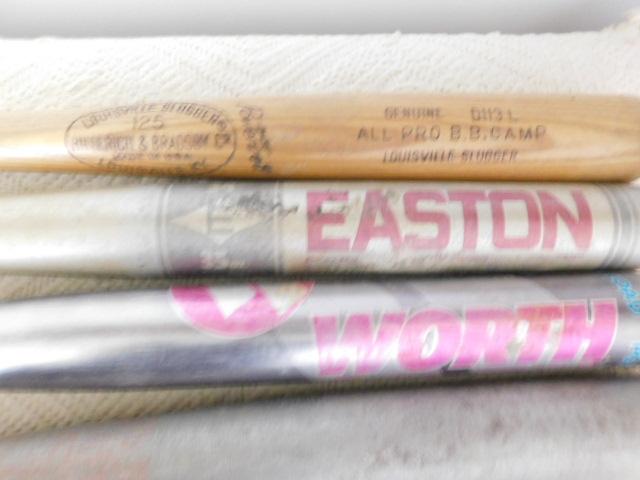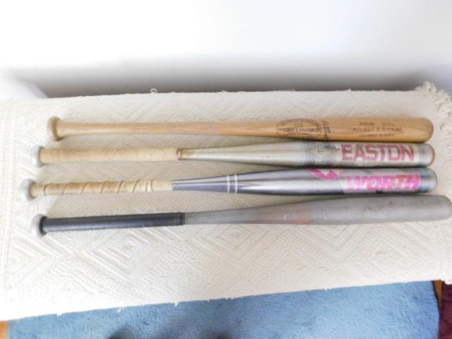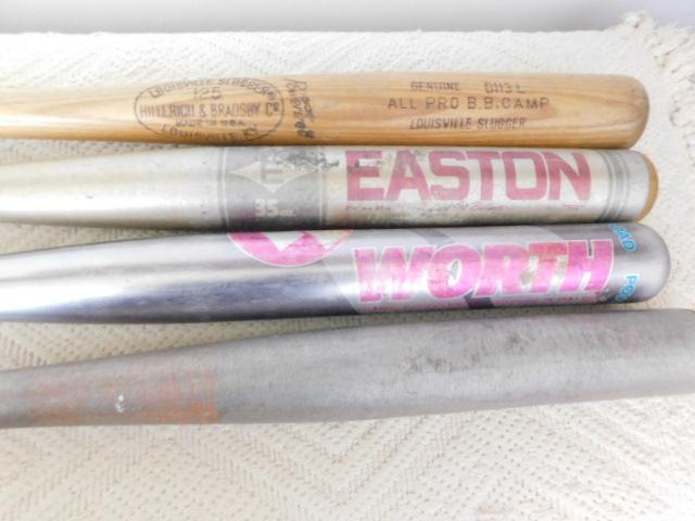 Set of Four Softball Bats Various Brands Aluminum and Wood includes Louisville Slugger