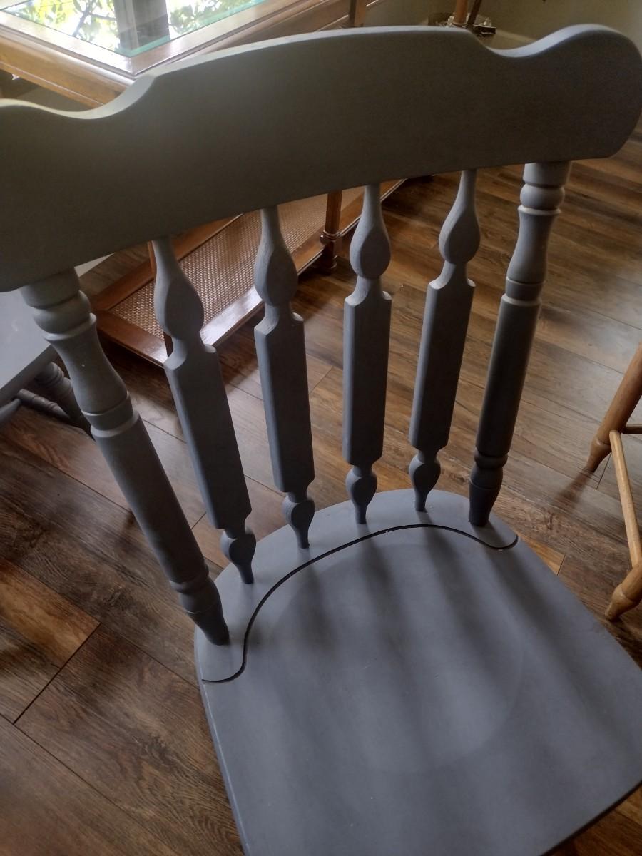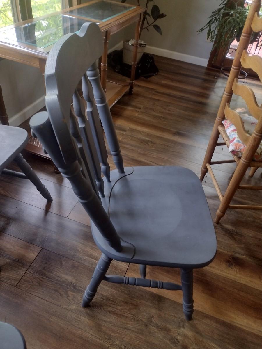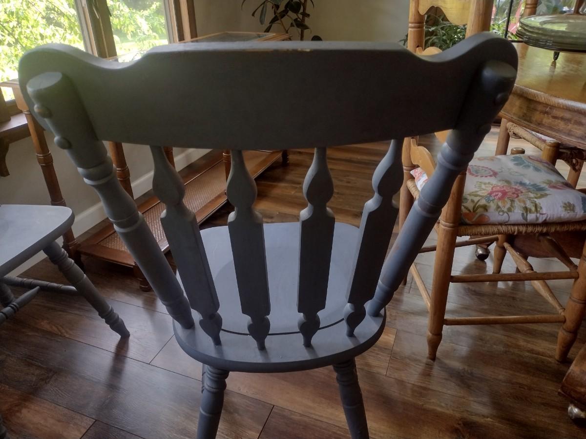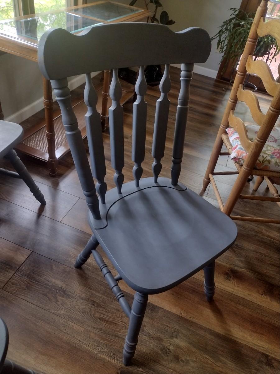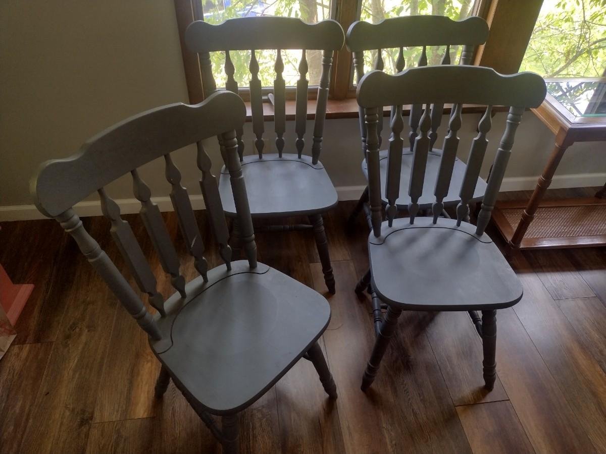 Set of Four Solid Wood Rustic Farm Chairs Antique Gray Paint Finish