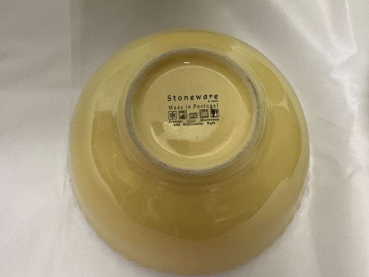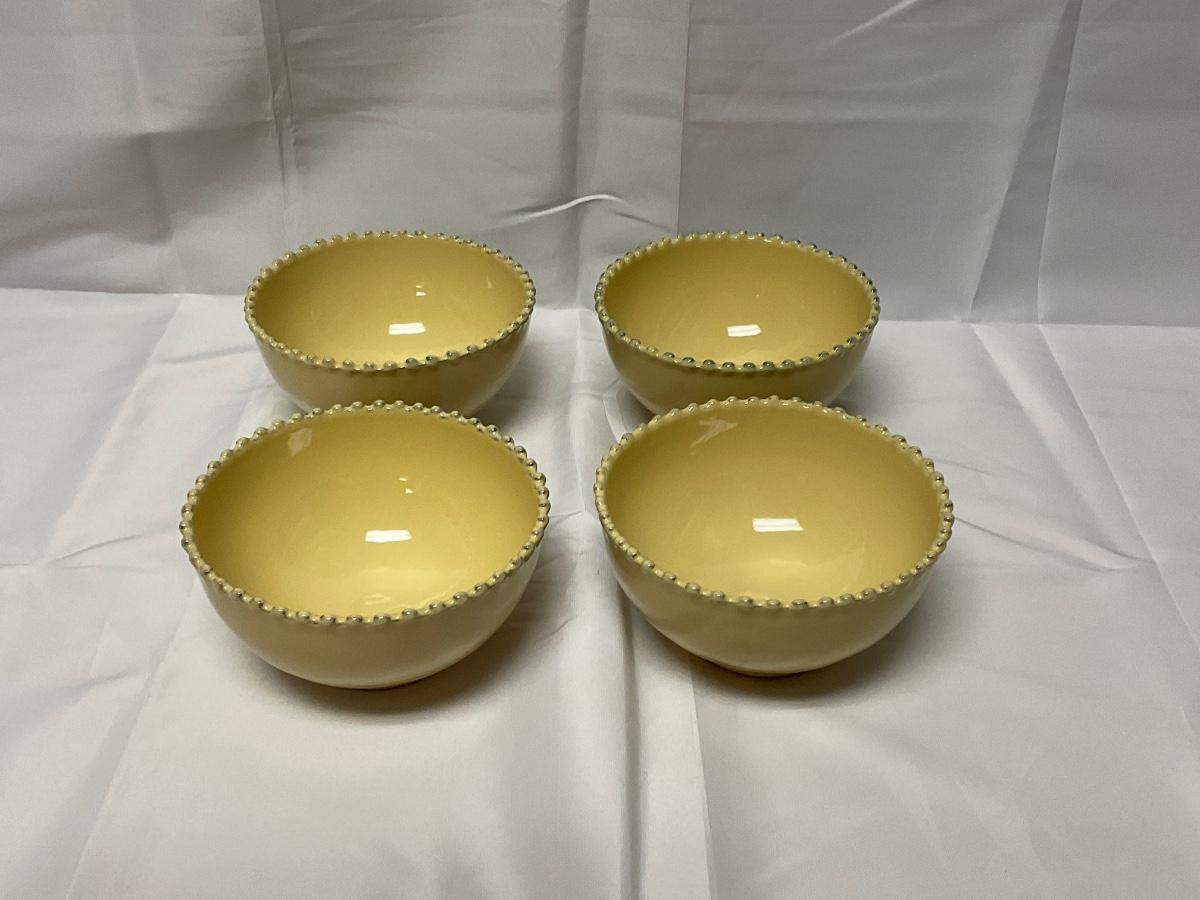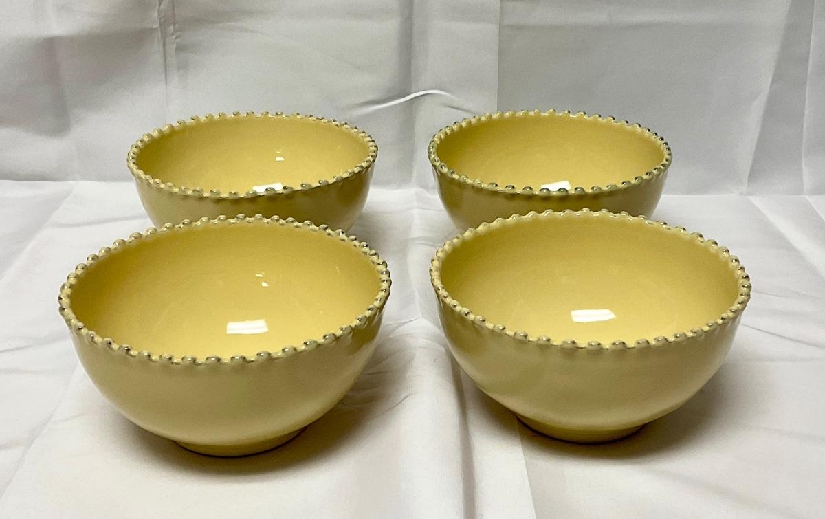 Muted Mustard Yellow Stoneware Hob Nail Rim Soup Cereal Bowls Portugal