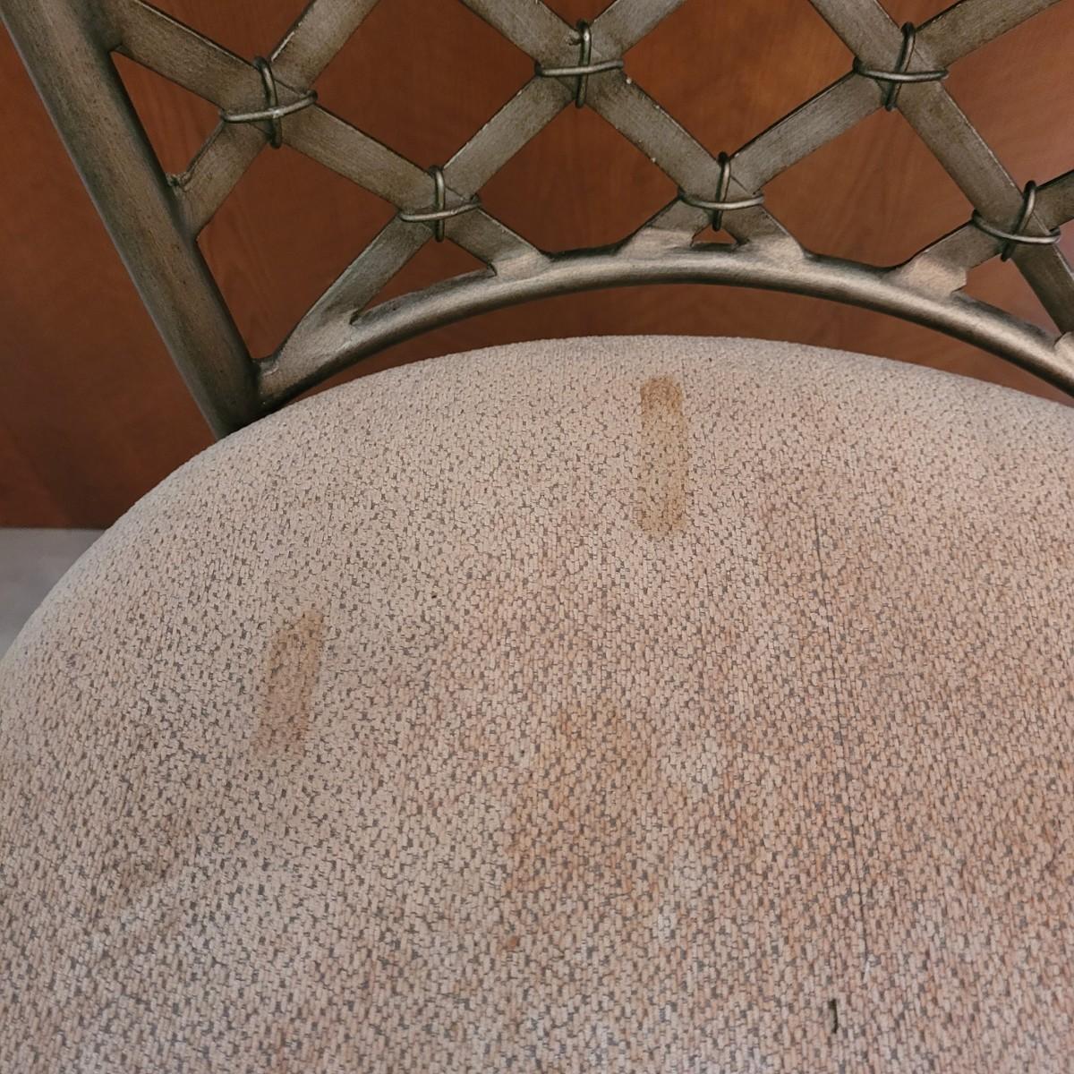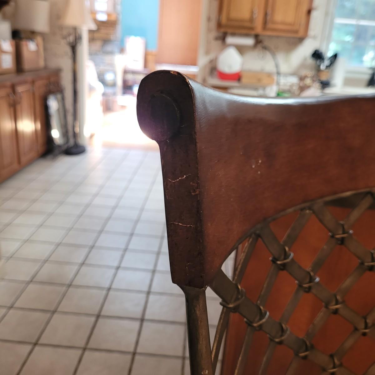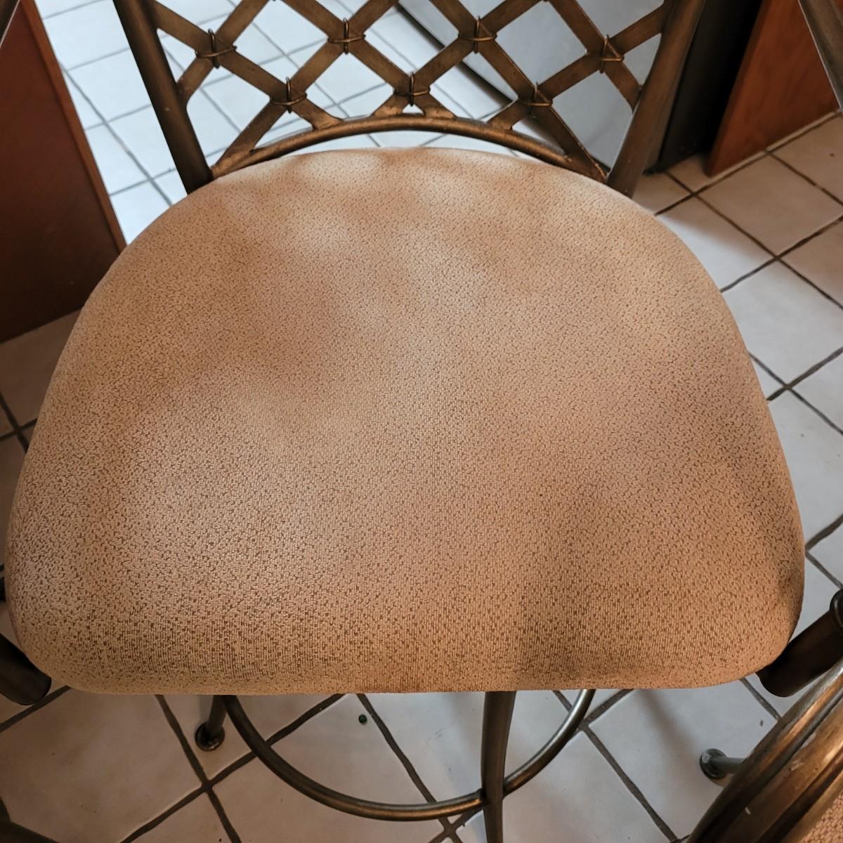 This set of four swivel bar stools includes two tall stools and two short stools. Sturdy metal construction, however one tall stool slightly wobbles. Upholstered seats show signs of wear (see photos). Tall stools measure approximately 22” x 17” x 47”H, with a seat height of 30”, and short stools 22” x 17” x 42”H, with a seat height 24.” Local pick up only.