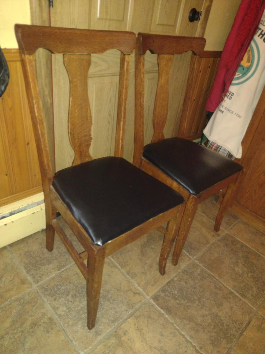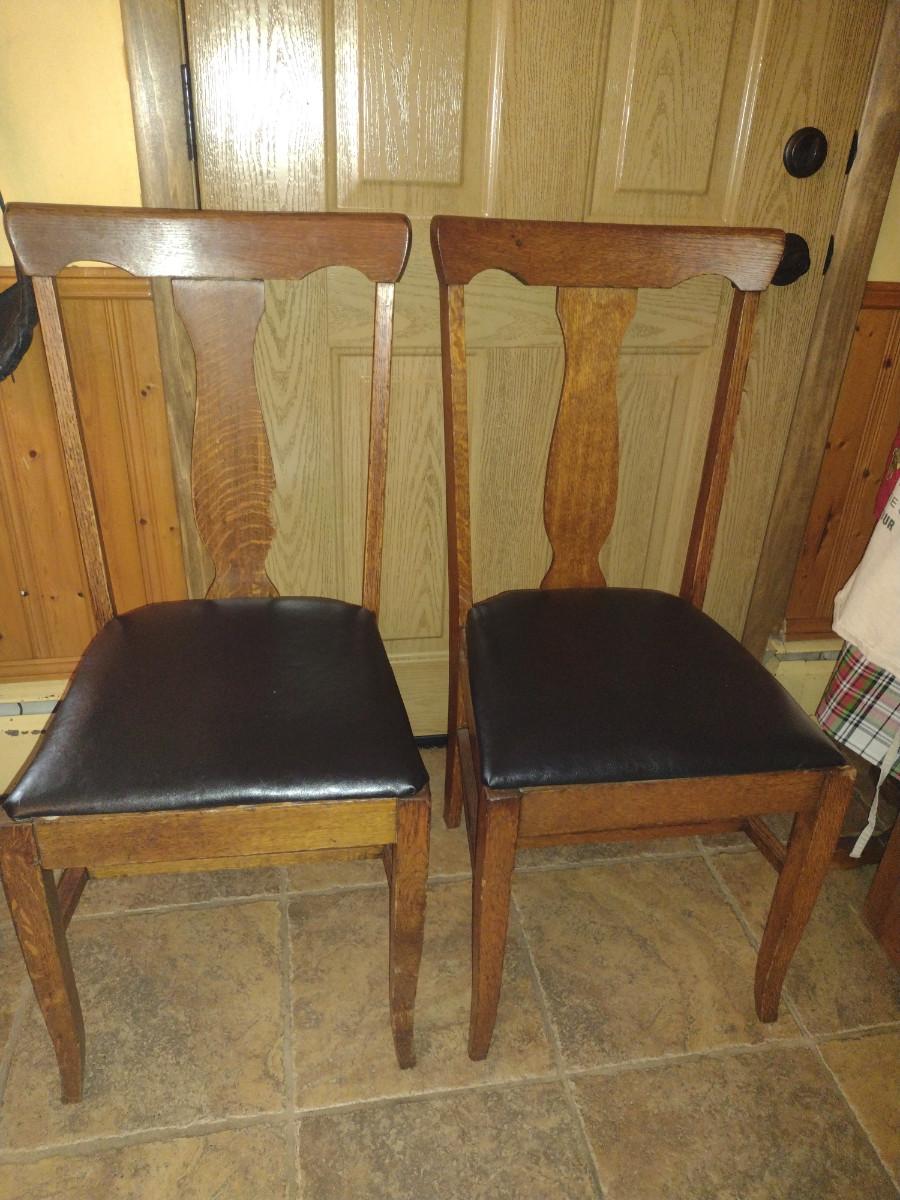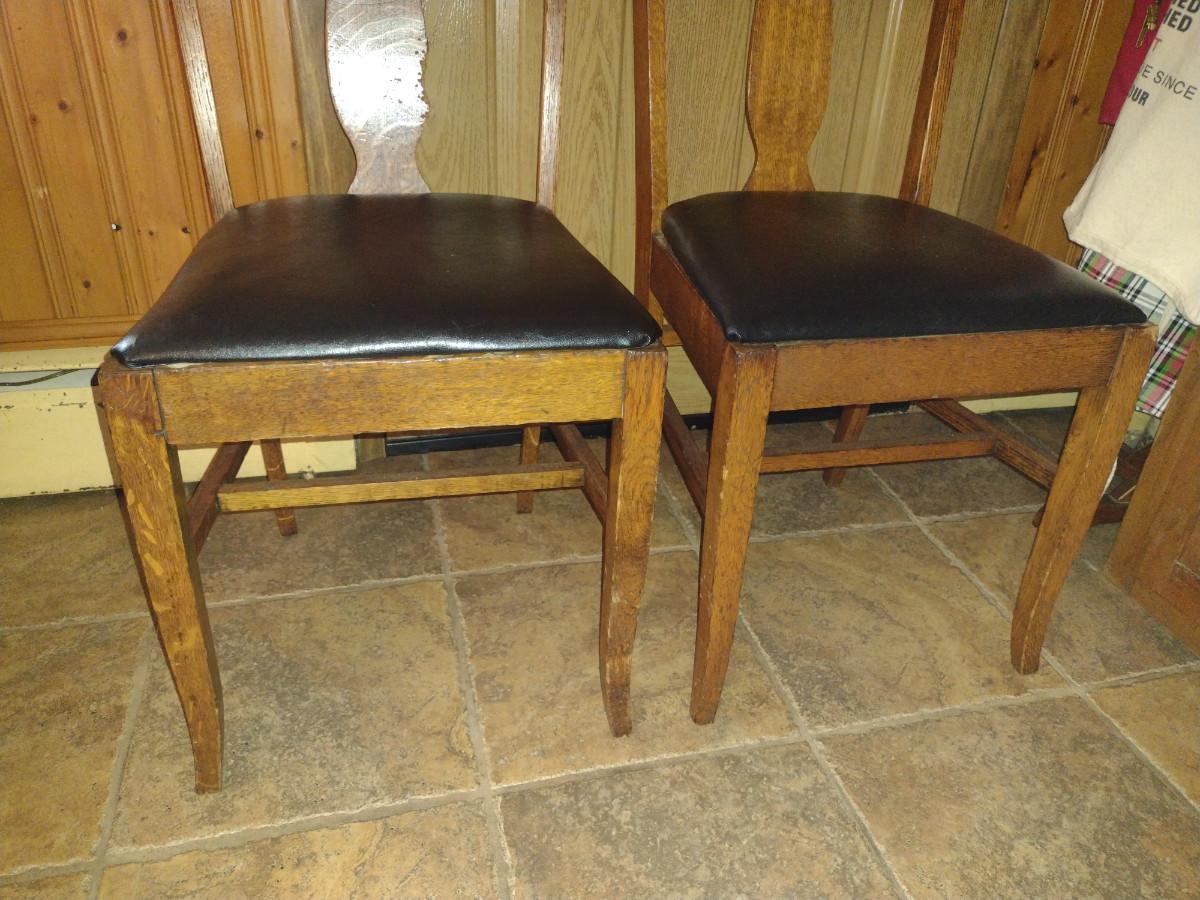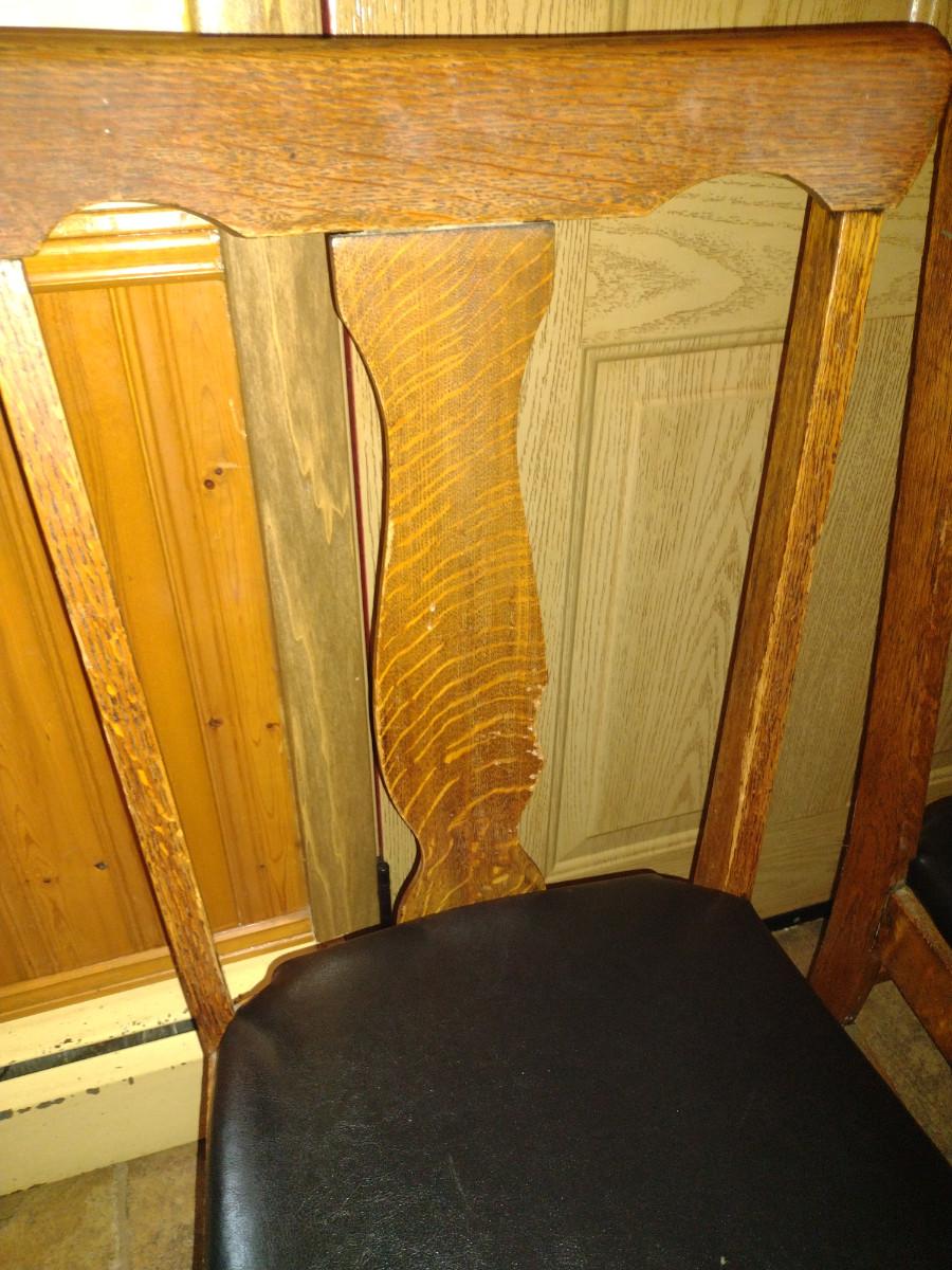 Set of Four Tiger Oak Urn Back Design Chairs. One has damage to back- please see all pictures.