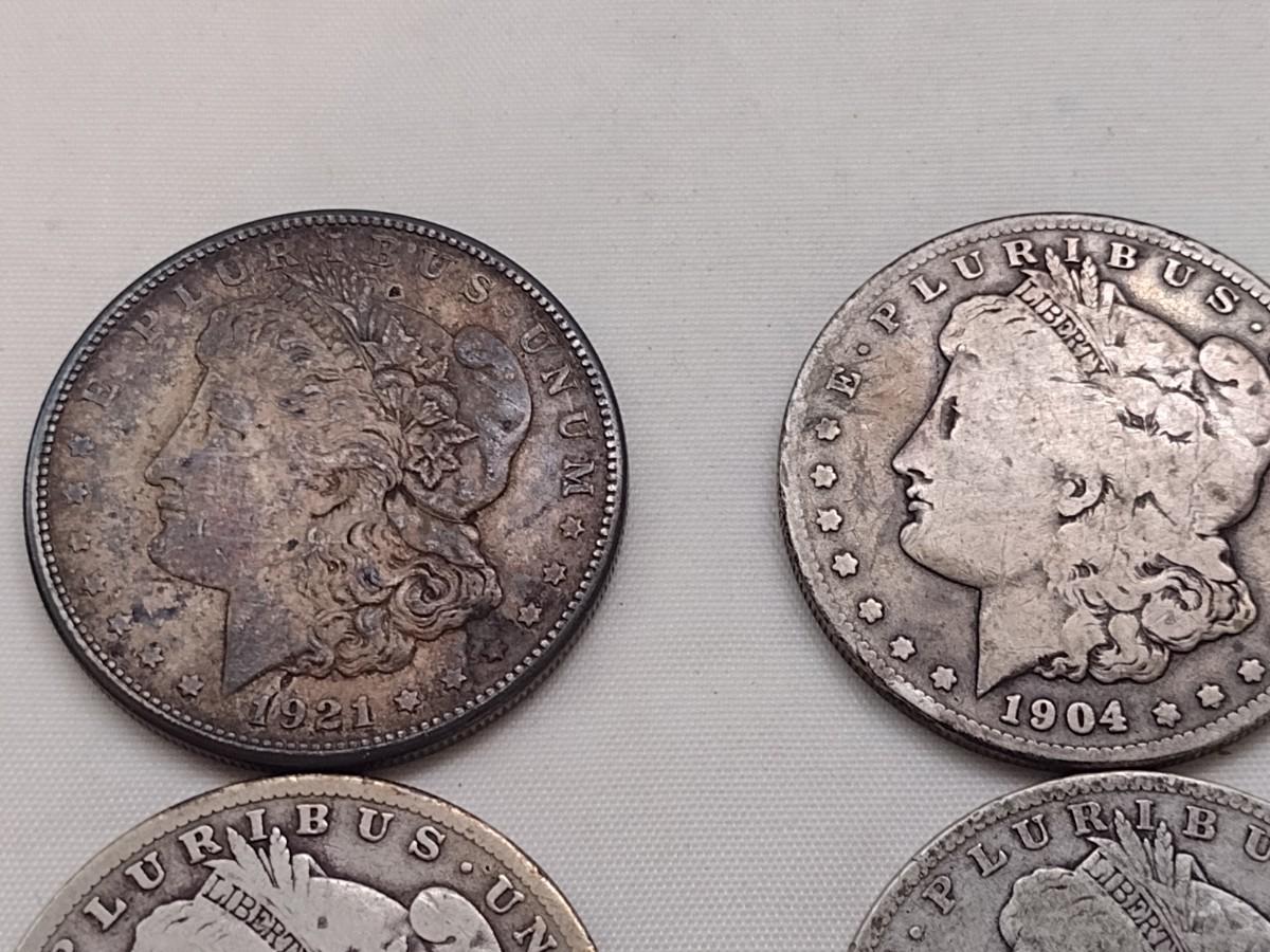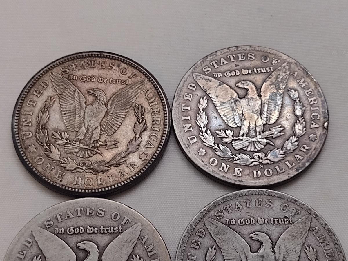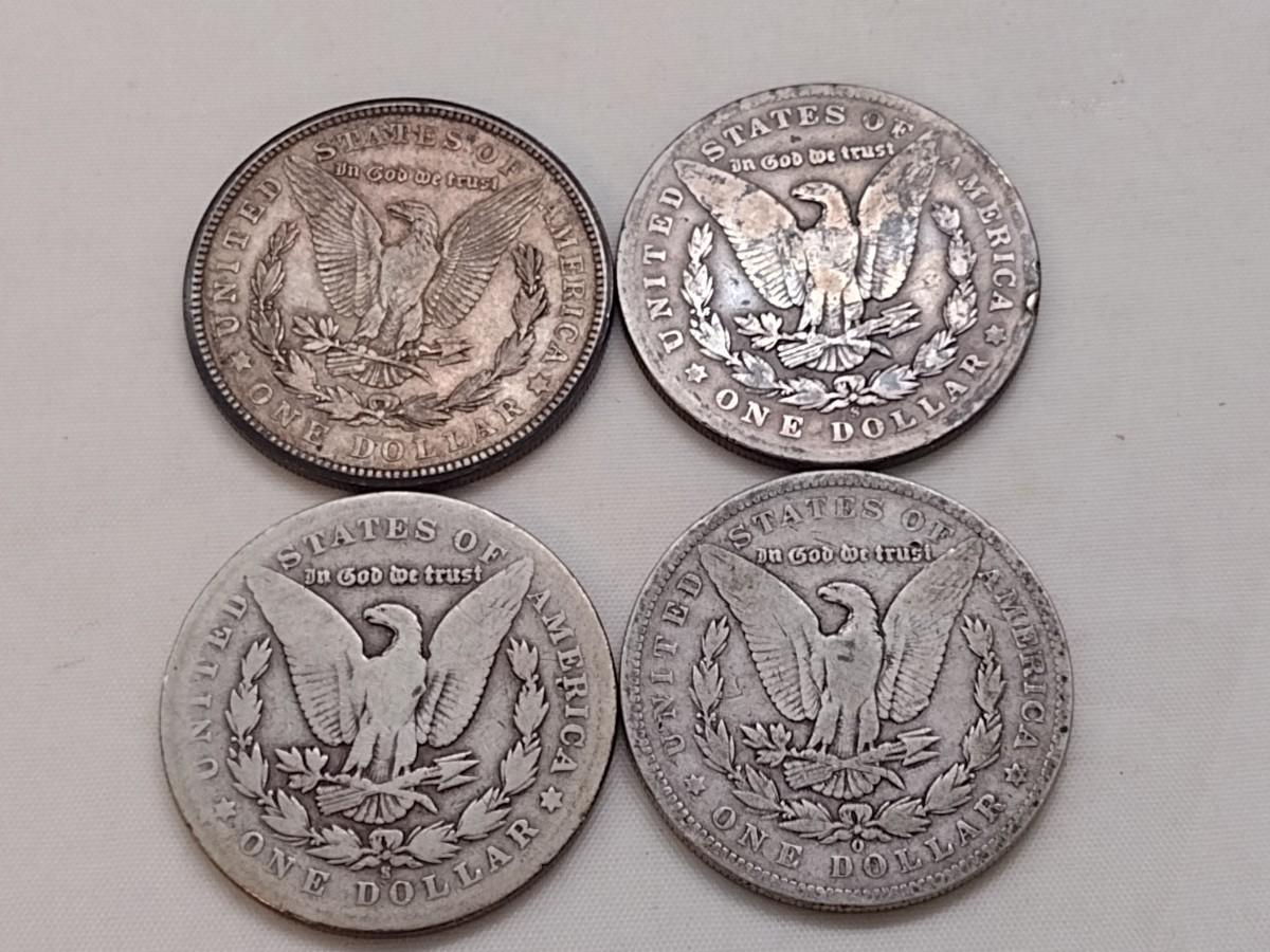 Set of Four U. S. Mint Mogan Silver Dollars Various Dates and Wear Legible Dates (#300)