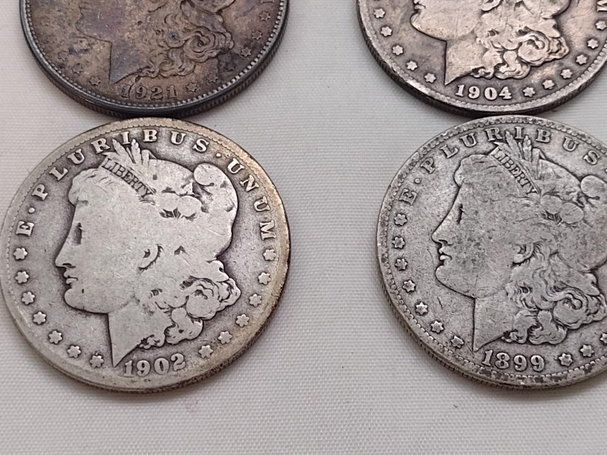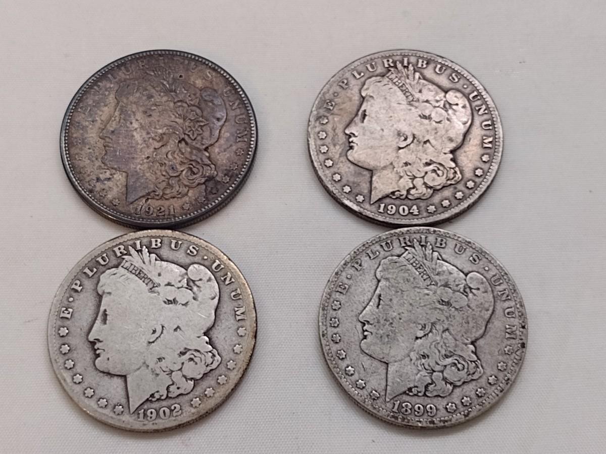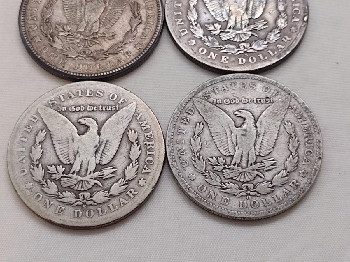 Set of Four U. S. Mint Mogan Silver Dollars Various Dates and Wear Legible Dates (#300)