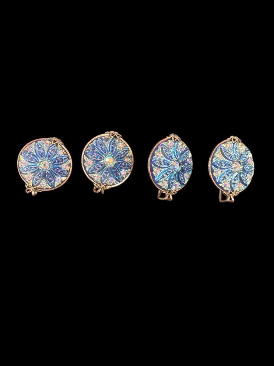 Set of Four Vintage Hillcraft Rhinestone Blue Slides