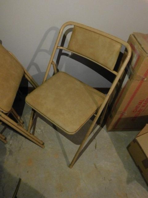 Set of Four Vintage Metal Frame and Padded Seat Fold Chairs