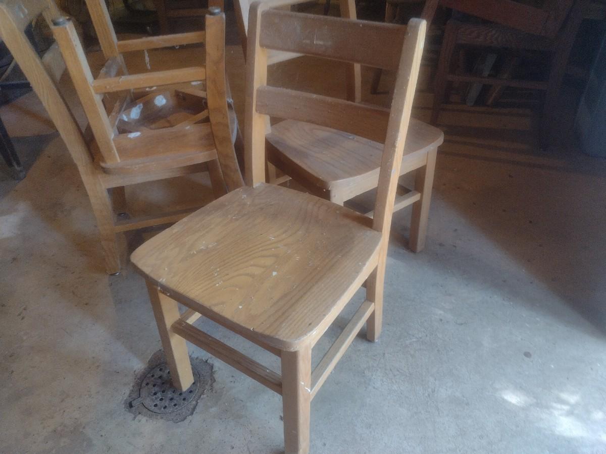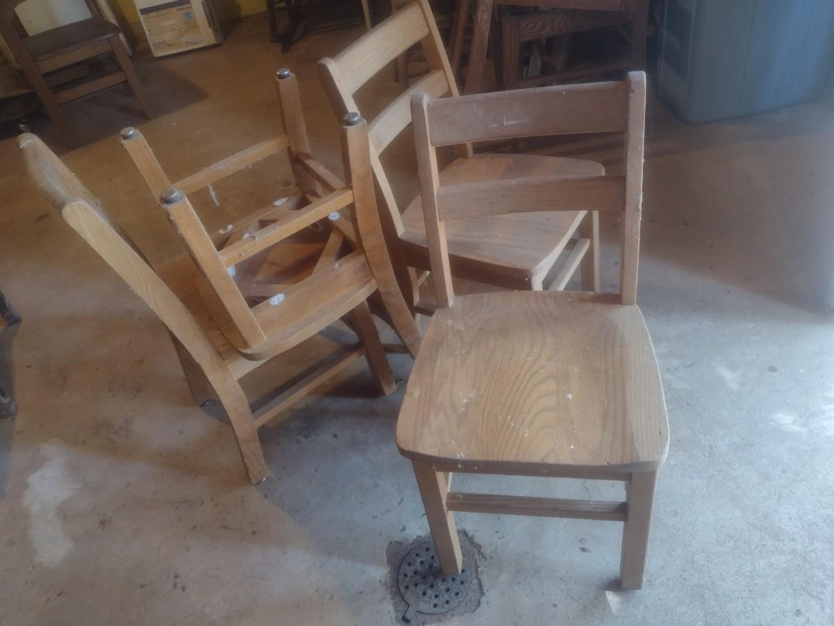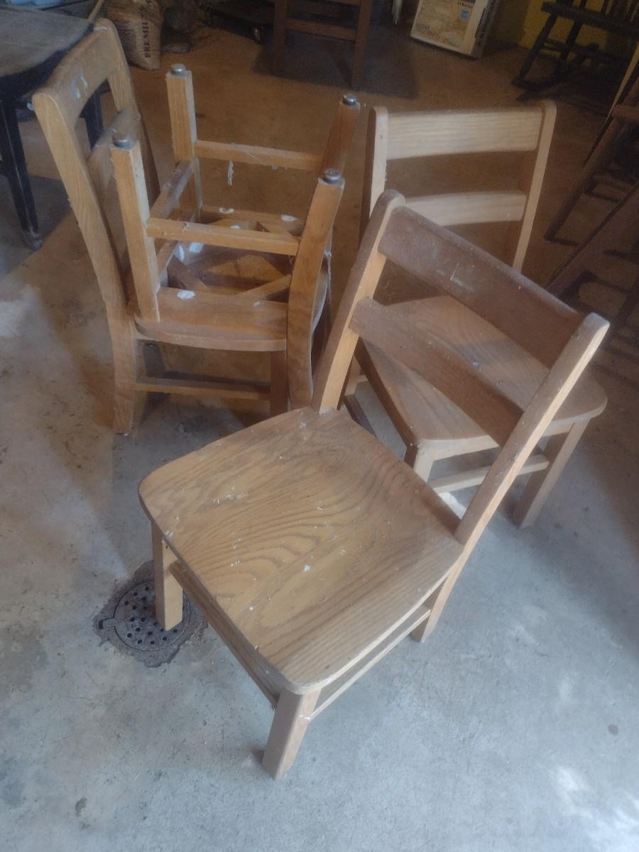 Set of Four Vintage Oak Children's Library Sitting Chairs