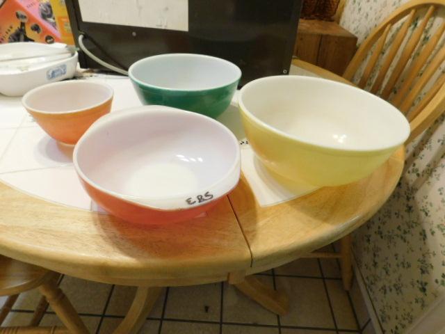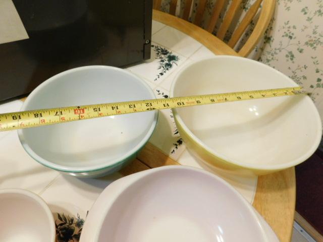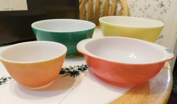 Set of Four Vintage Pyrex Mixing Bowls of Various Sizes one has marker on surface as shown