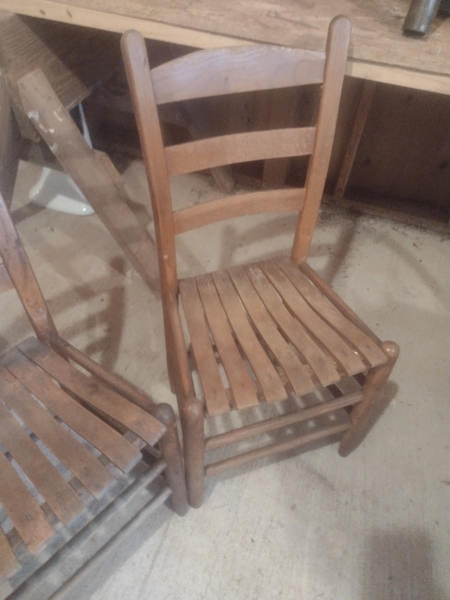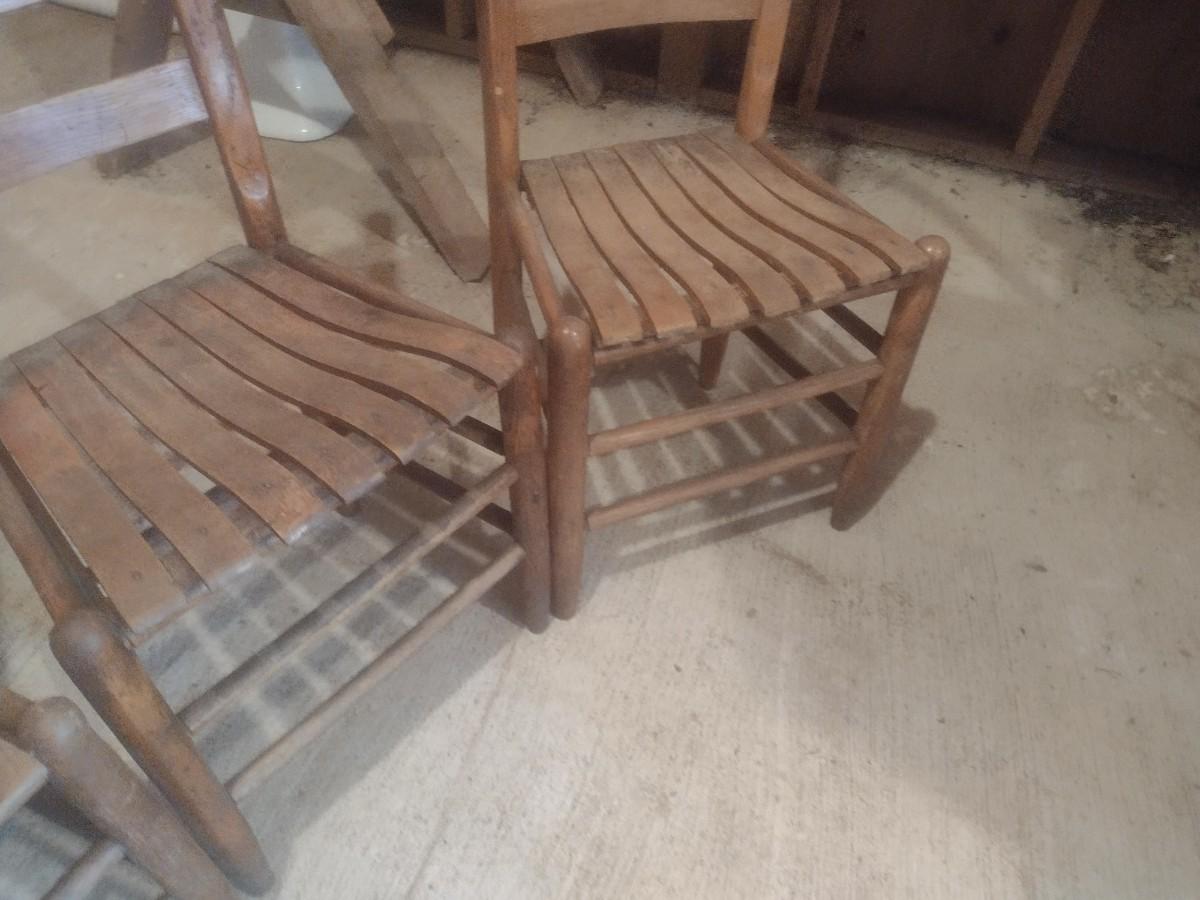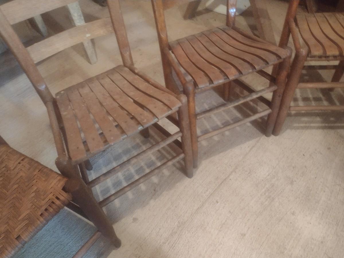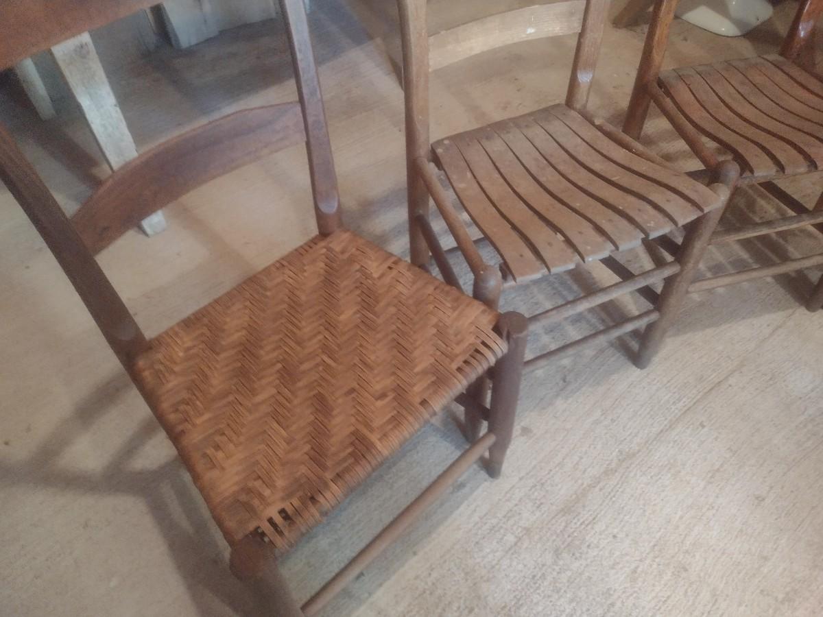 Set of Four Vintage Shaker Style Wood Slat and Rush Seat Sitting Chairs