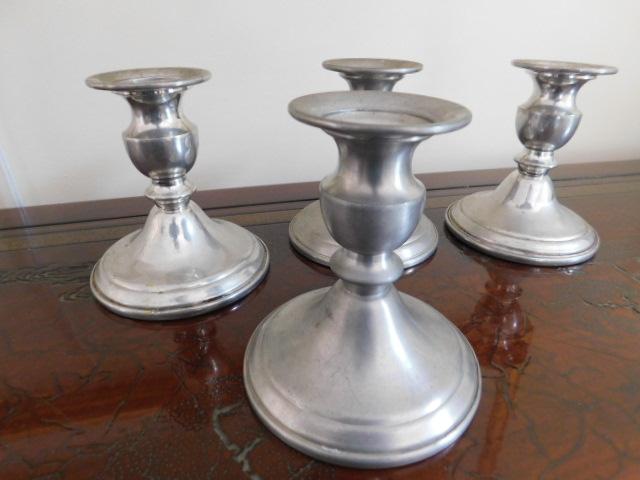 Set of Four Weighted Webb Pewter Candlestick Holders 5"