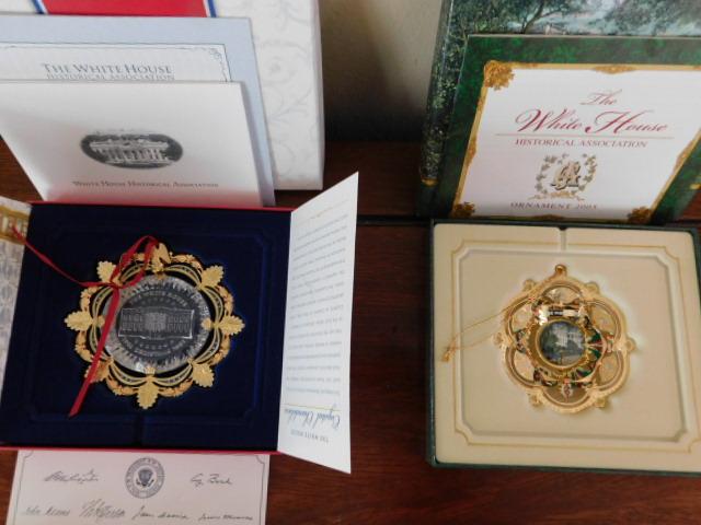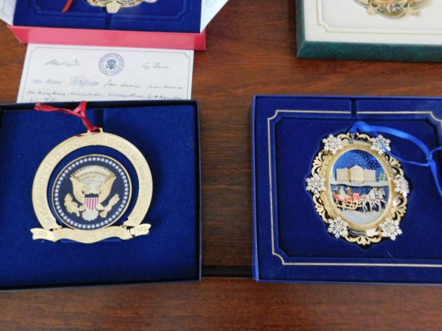Set of Four White House Historical Association and Presidential Seal Christmas Ornaments with Boxes and COA's