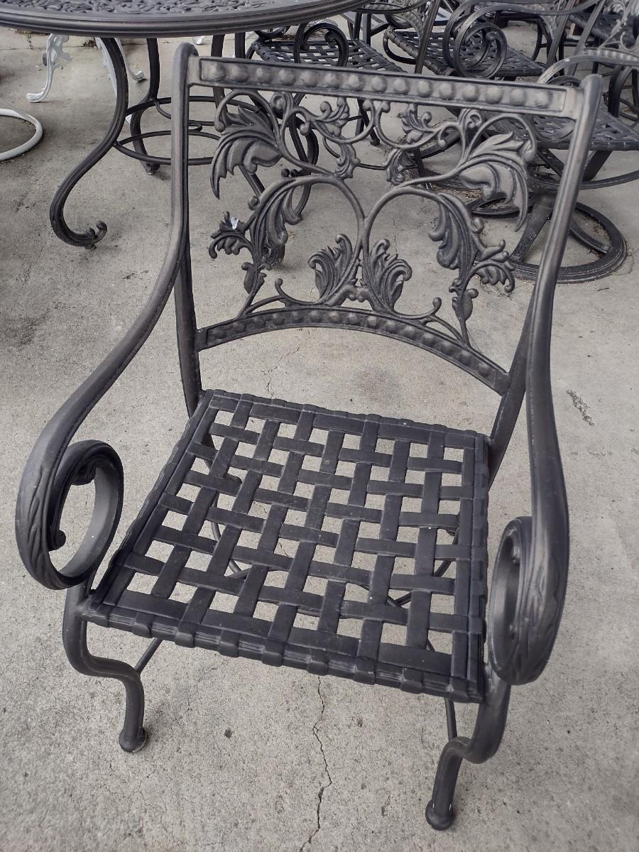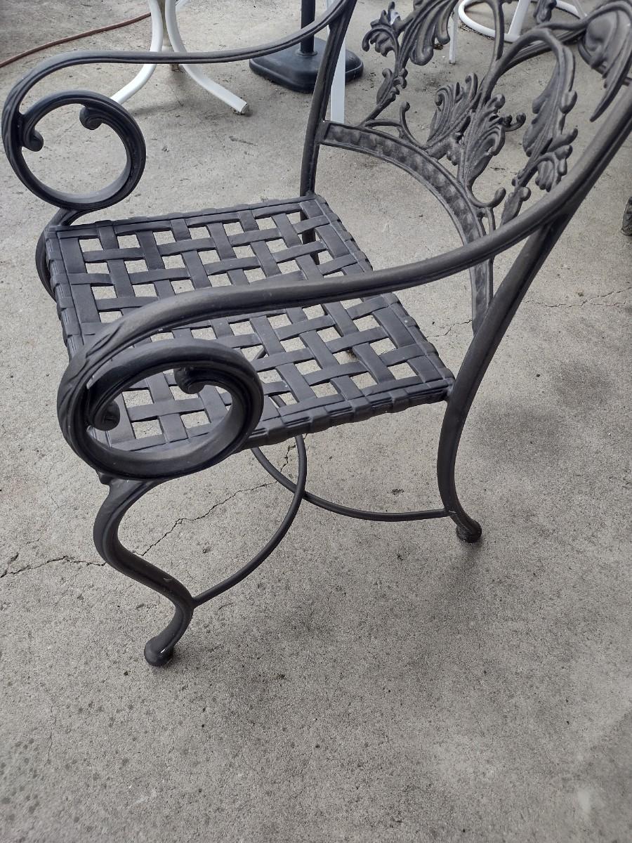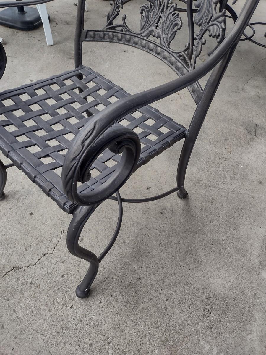 Set of Four Wrought Metal Floral Design Outdoor Patio Chairs