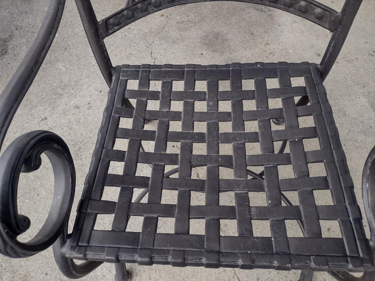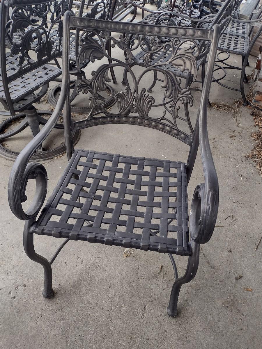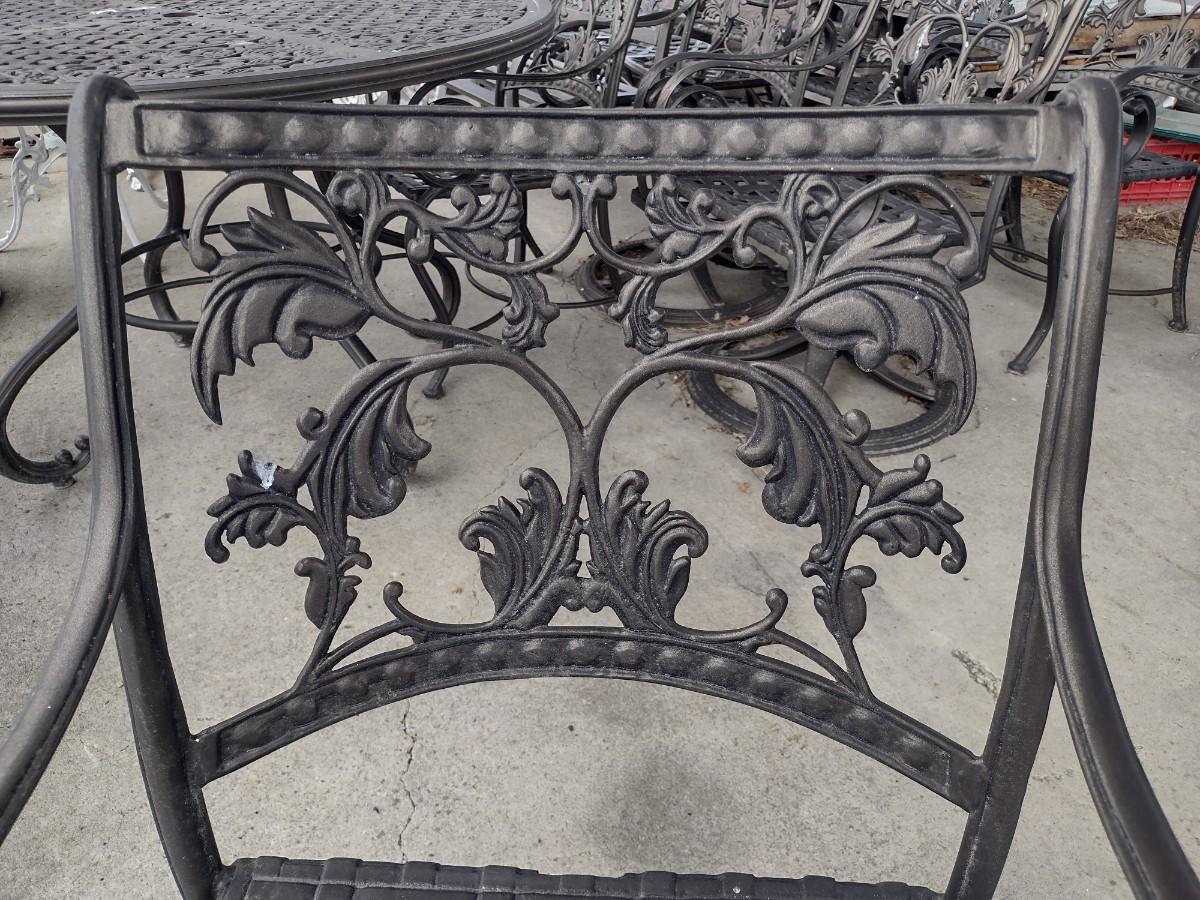 Set of Four Wrought Metal Floral Design Outdoor Patio Chairs