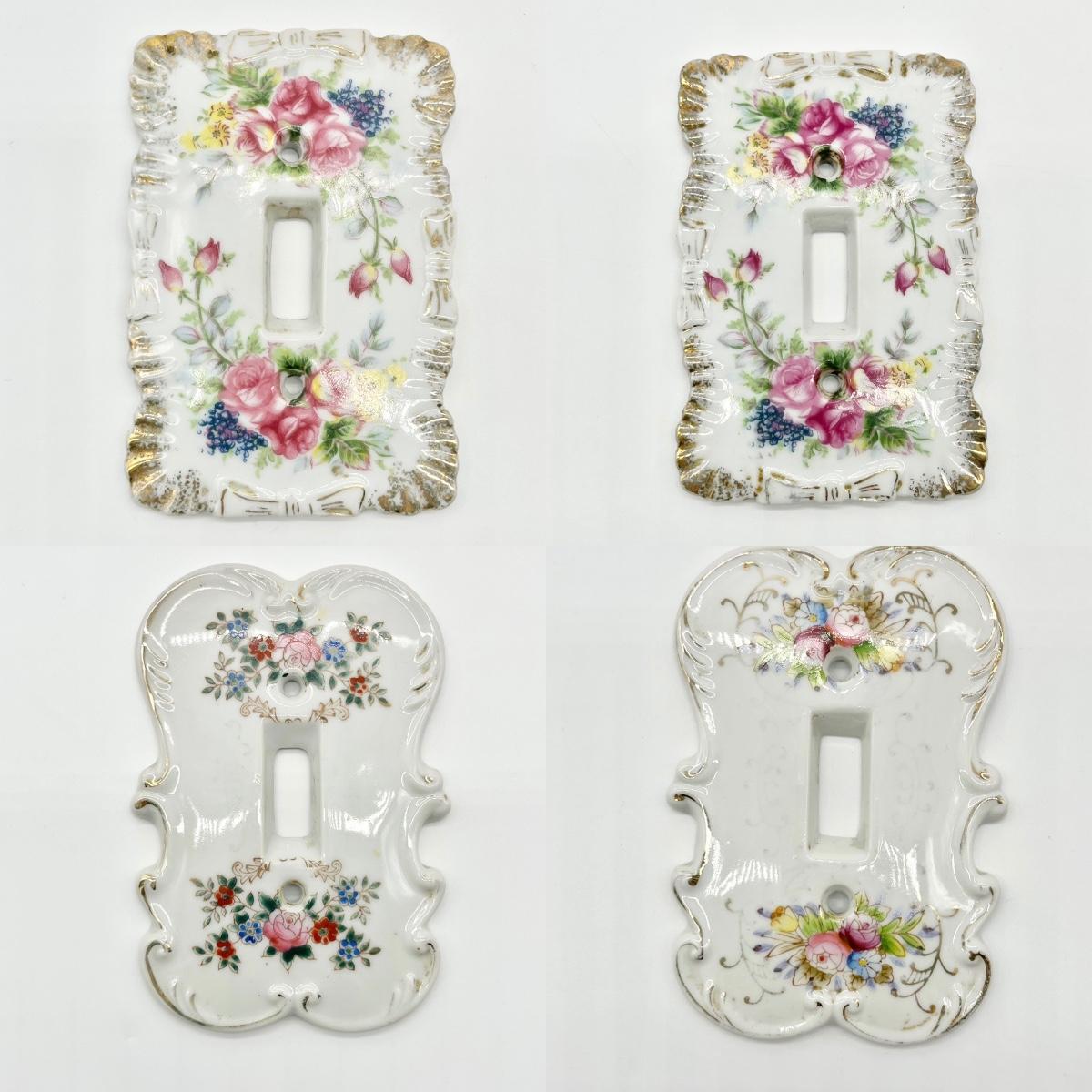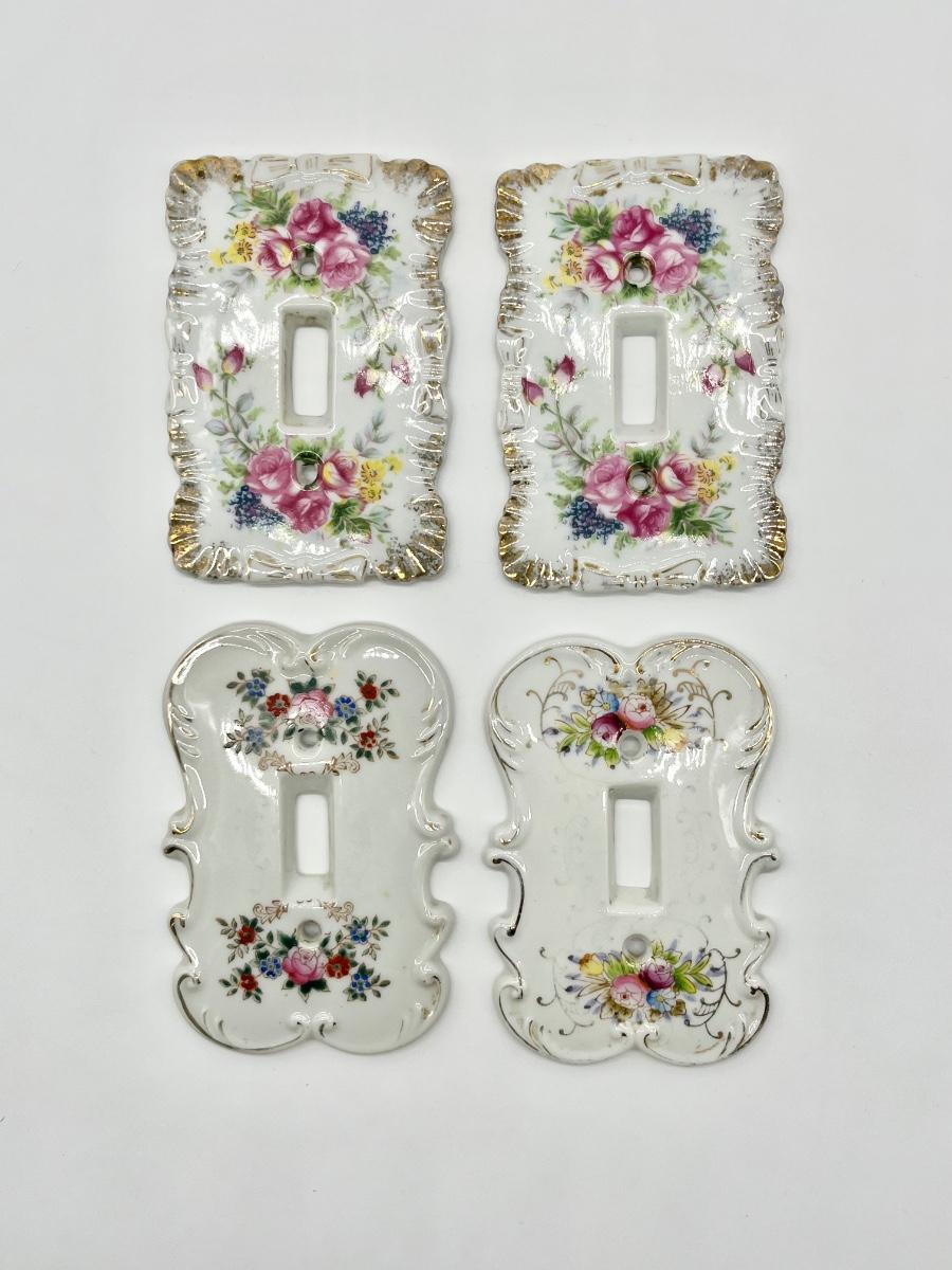 Set of Four (4) ~ Hand Painted Porcelain Light Switch Covers