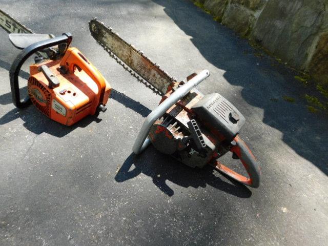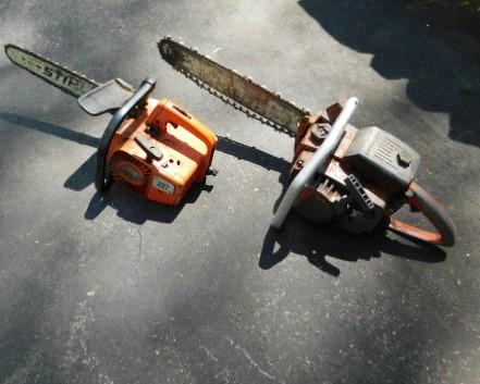 Set of Gas Powered Chain Saws both will pull but can not get them to start. Will need tuned up or may be sold for parts.