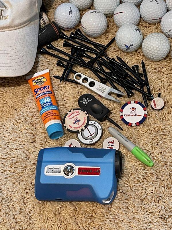 And all accessories shown - balls, tees, sunscreen, cap, highlighter pen - you're good to grab and go!