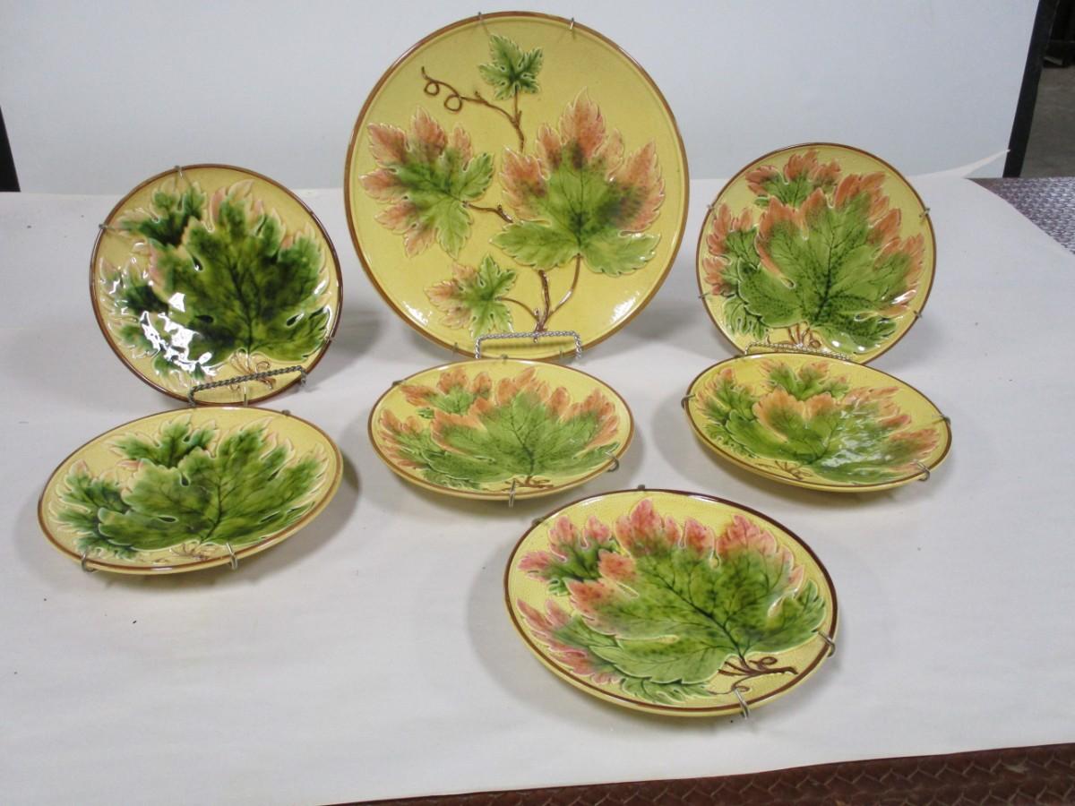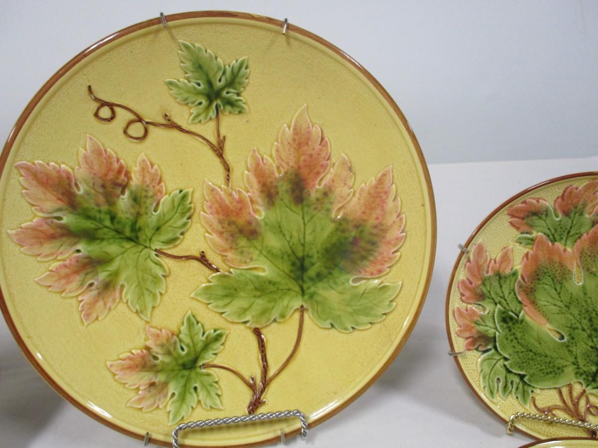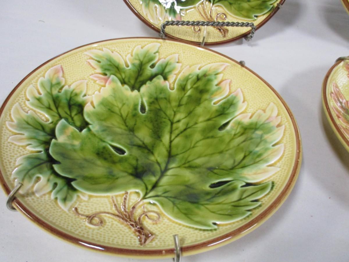 Set Of Grape Leaf Majolica Dessert Plates