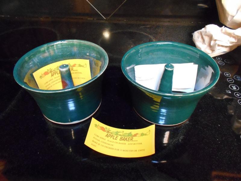 Set of Green Pottery Apple Bakers by Brown Pottery Arden, NC