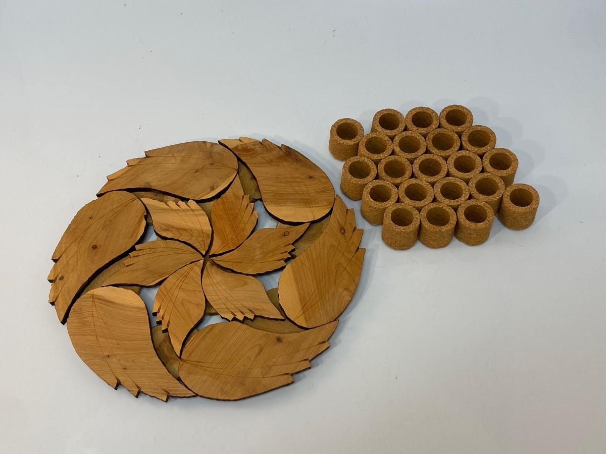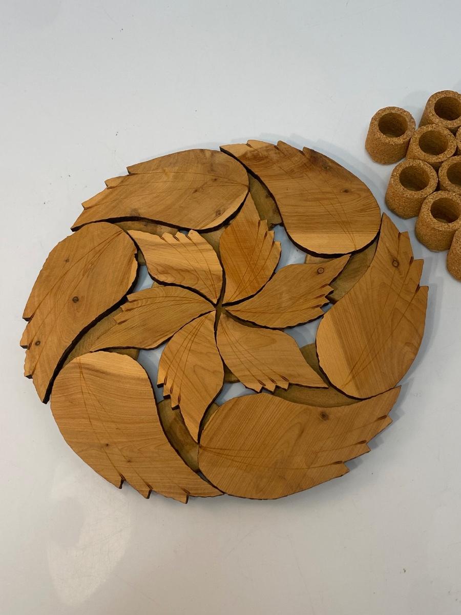 Set of Hand Made Wood Cork Trivets. In good condition.