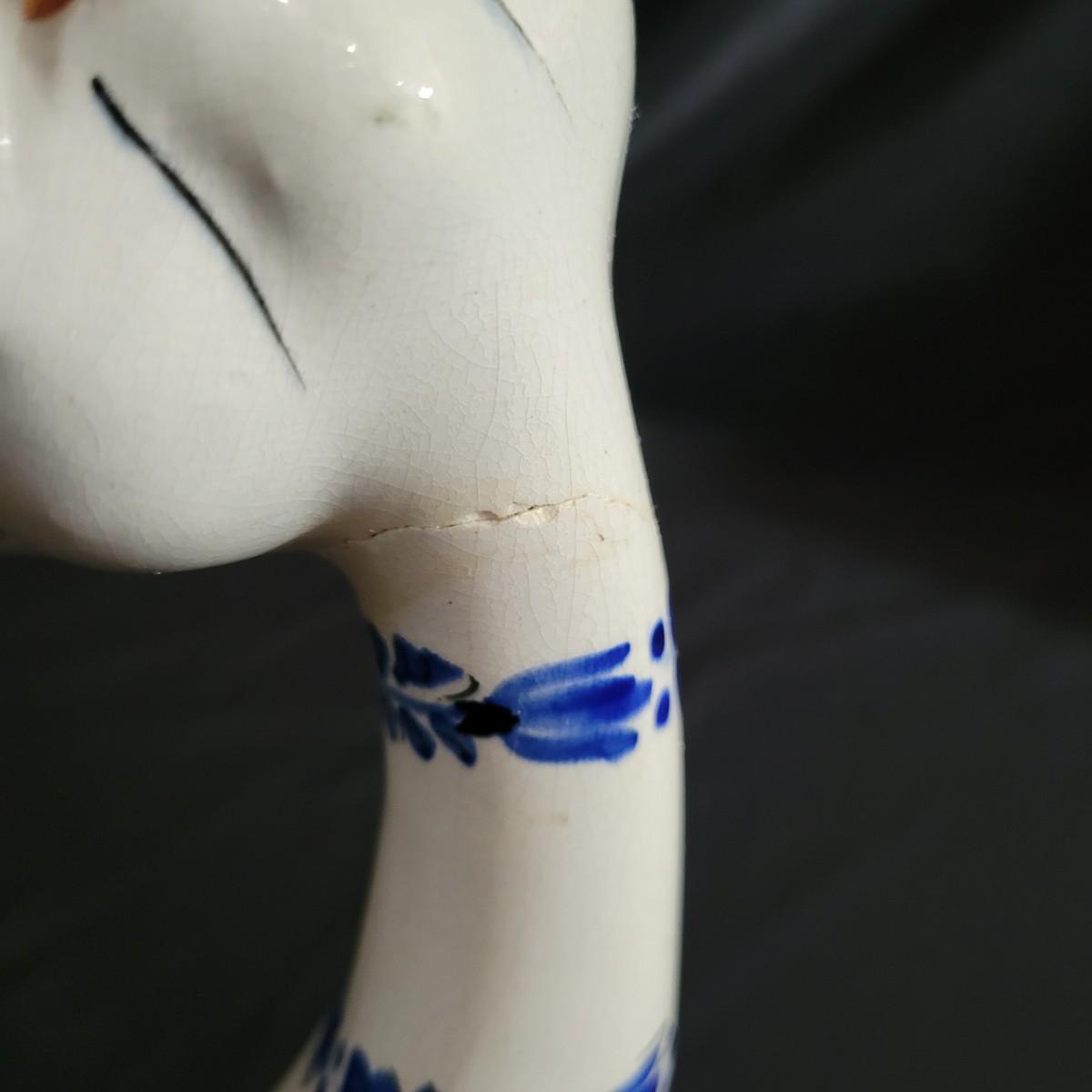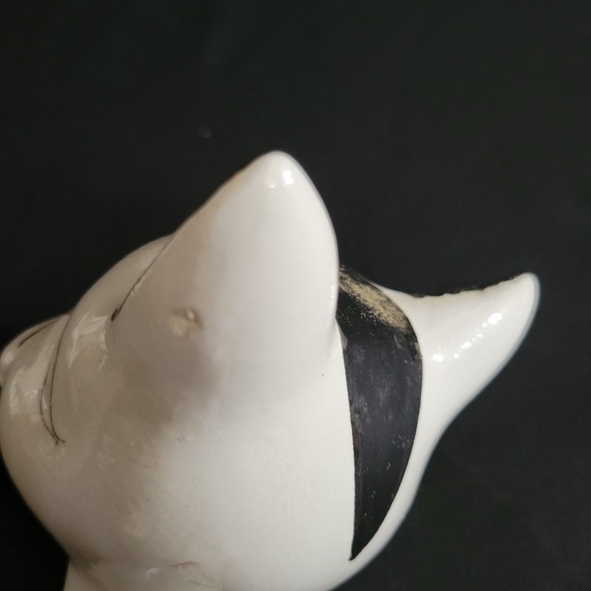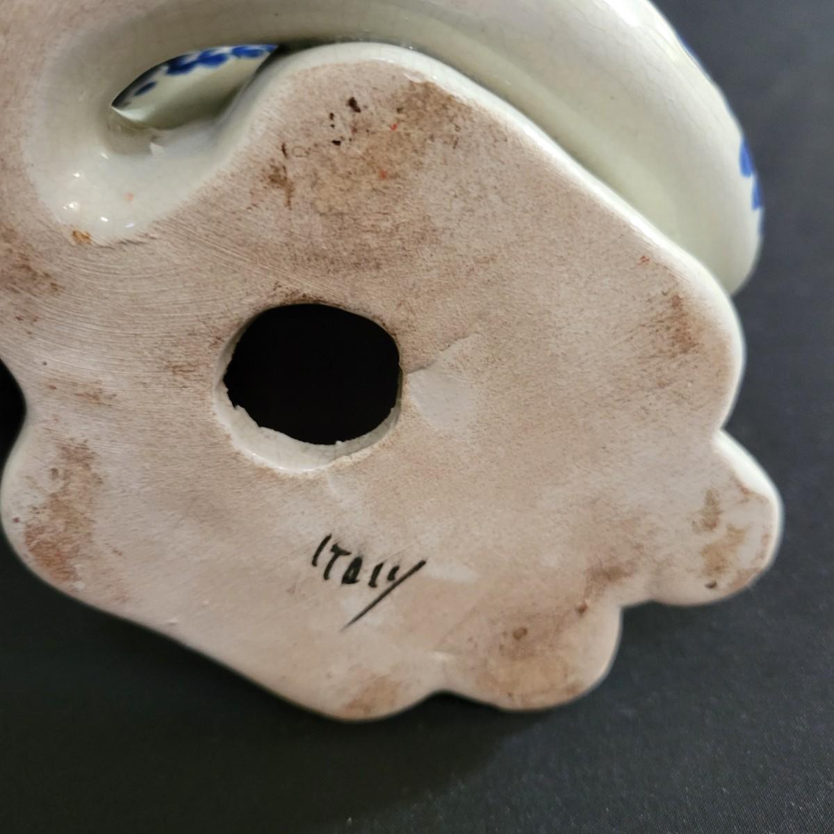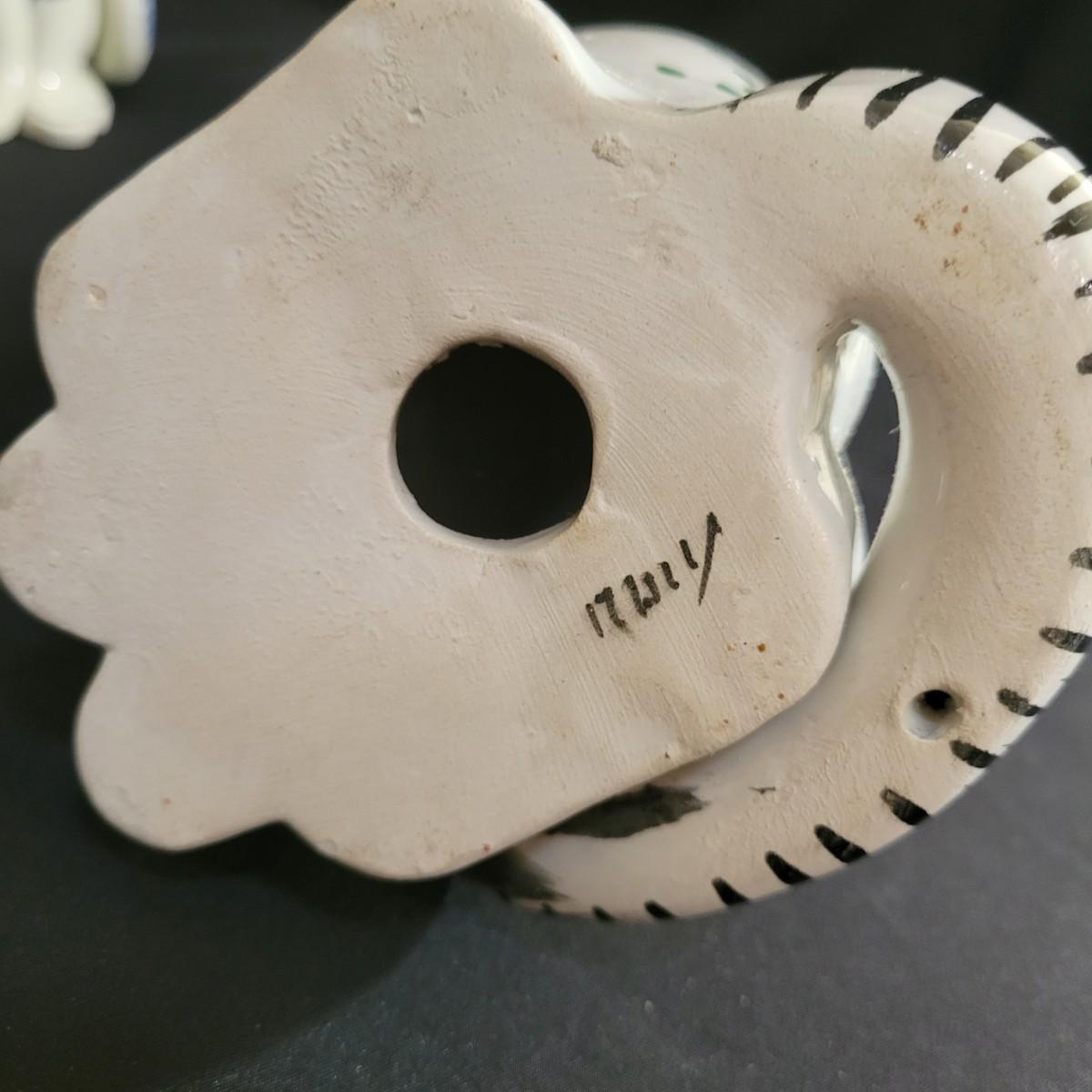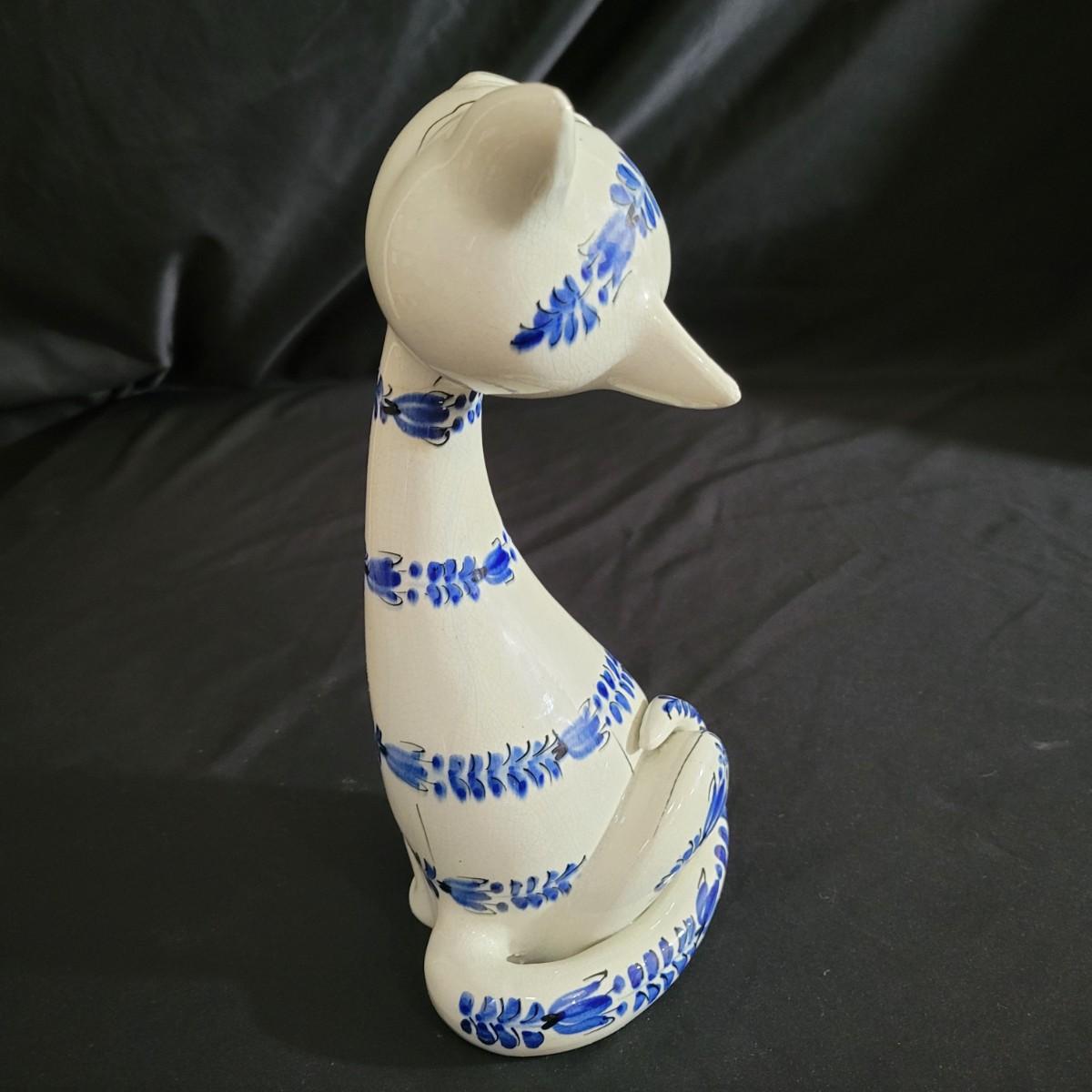 A set of four ceramic cats in good condition. One cat has a large crack on its neck and one has a chip. These cats feature hand painted details and are labeled as being made in Italy. Cats measure approximately 4" x 5" x 11". Shipping available. Shipping can be costly. We suggest calling our local UPS with dimensions and getting an estimate. 828-252-6930