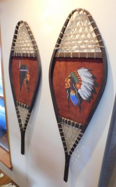 Set of Hand Painted Snow Shoes with Native American Couple 42"x14" full color and snow shoes are in excellent shape to make for an appealing display