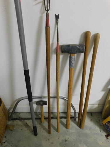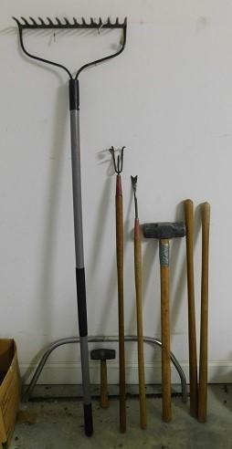 Set of Hand Tools Including Sledge Hammer and Garden Tools