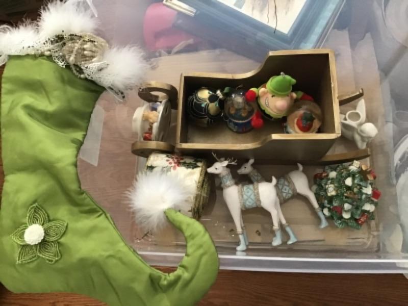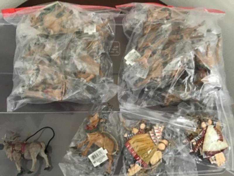 SET OF HOLIDAY DECORATIONS, LOTS OF NEW DECORATIONS IN BAGS.