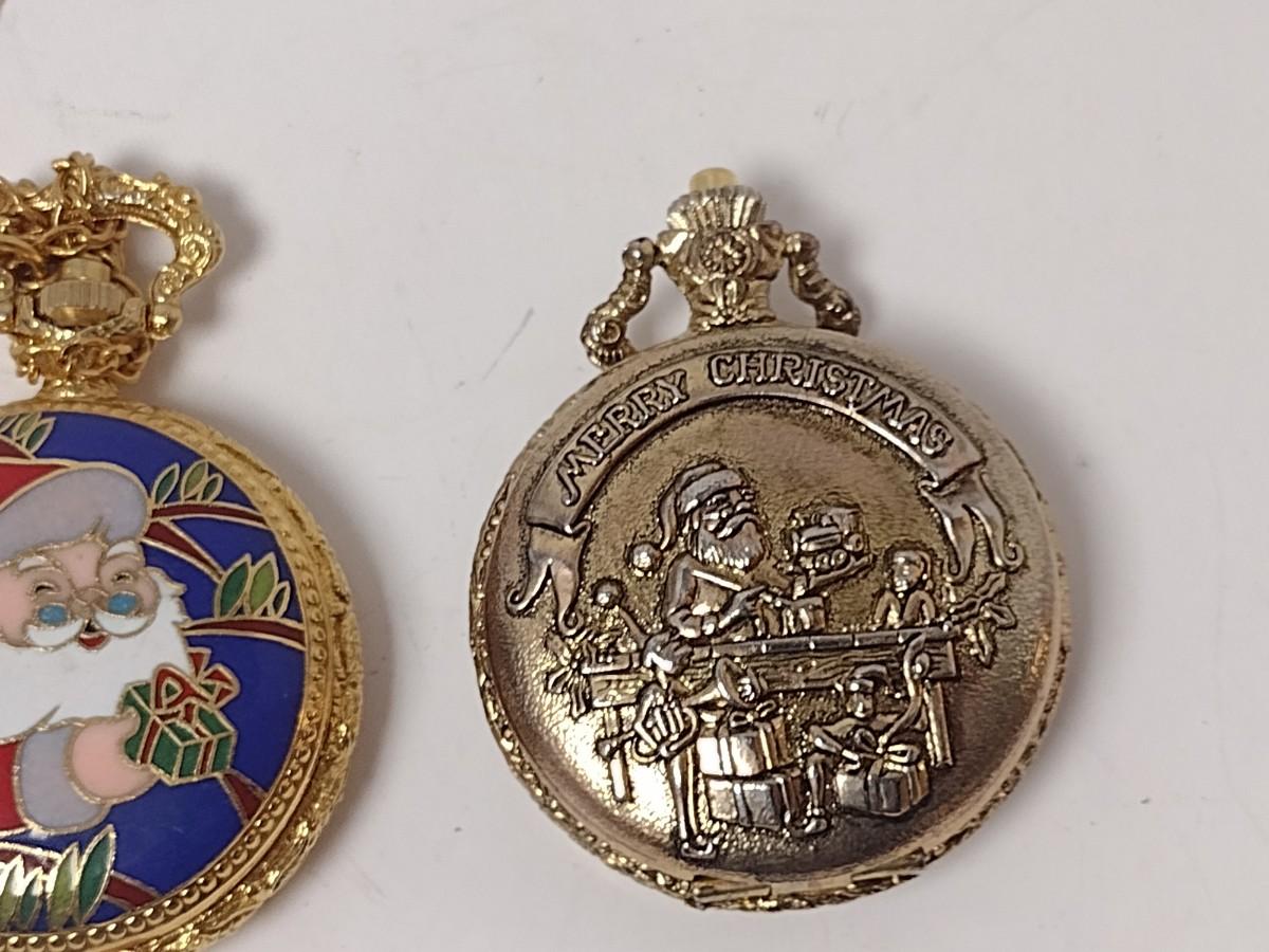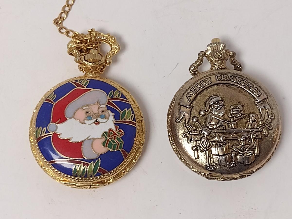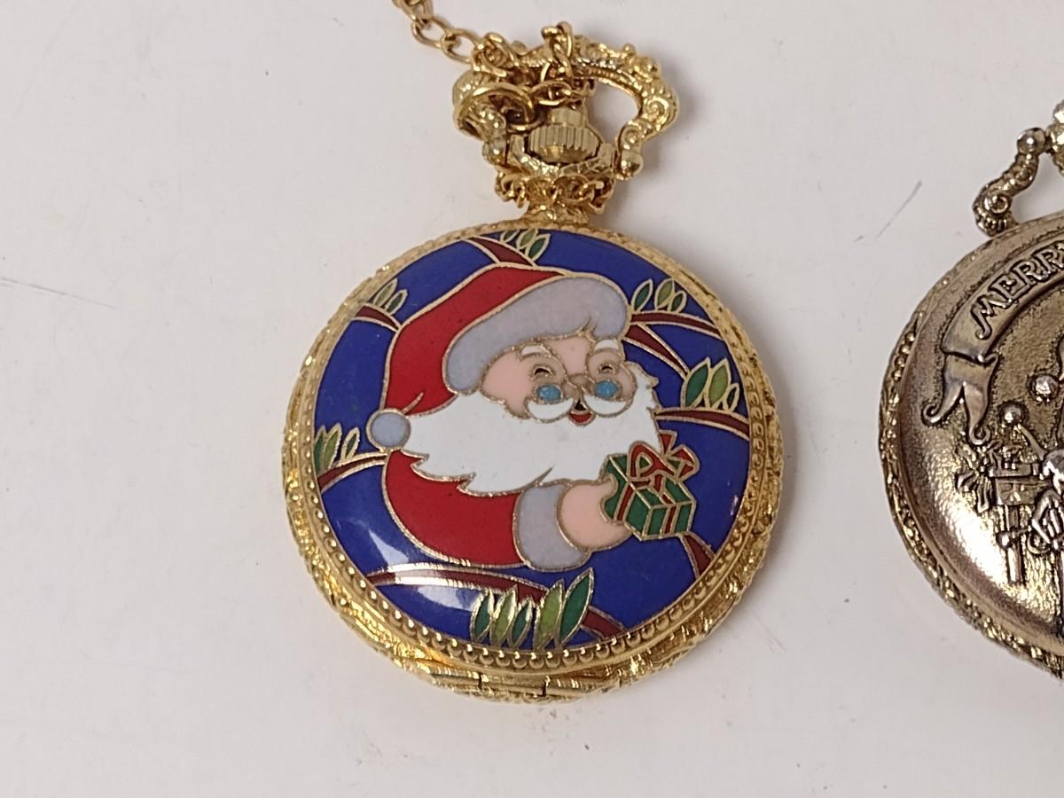 Set of Holiday Themed Pocket Watches and Pendent Watch. Unknown working condition.