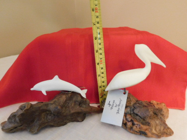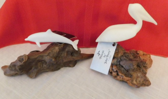 Set of John Perry White Animal Sculptures Set on Burlwood Base