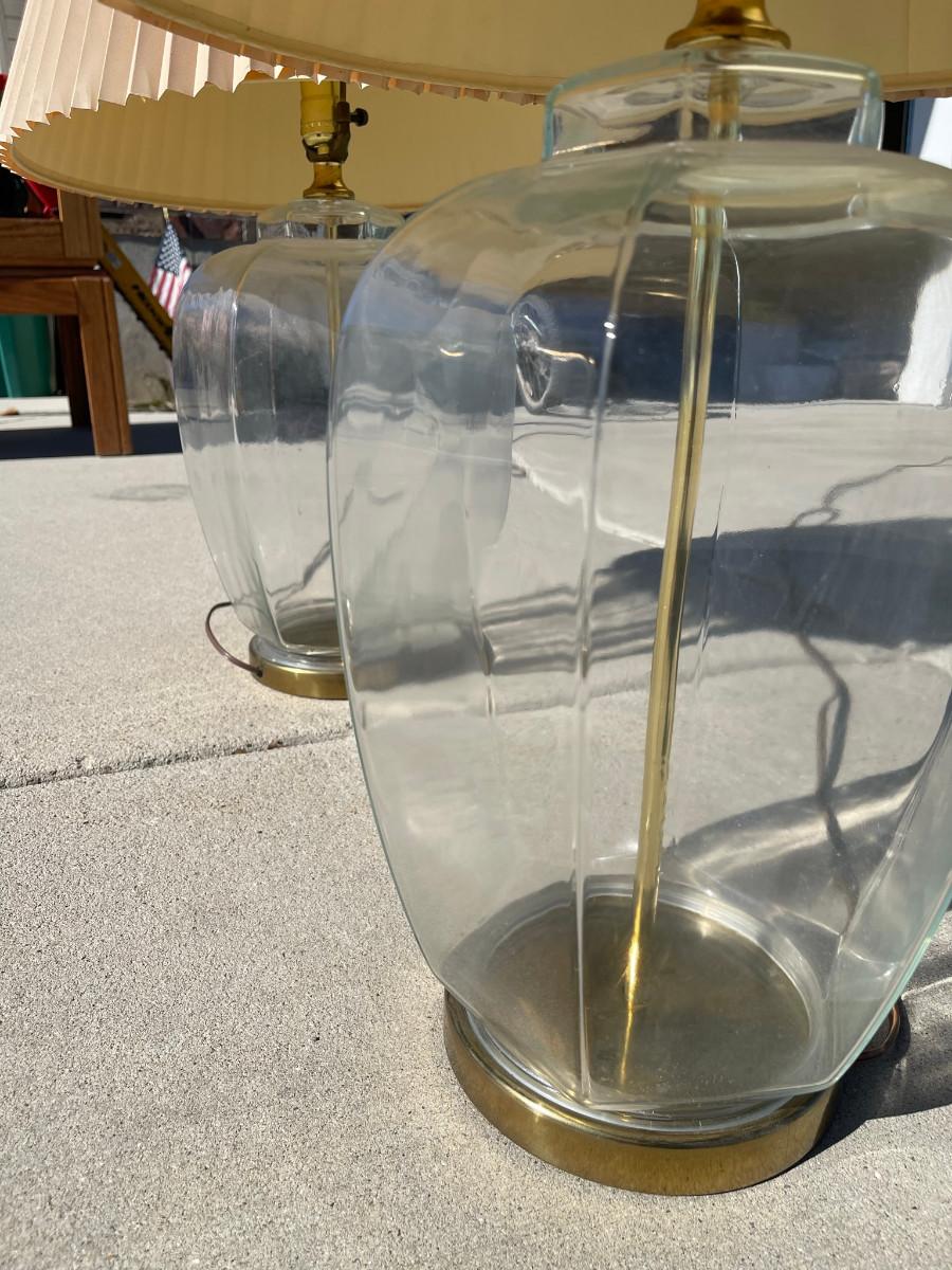 Glass Base with Brass Rod & Lamp Shade- Please view photos for additonal details