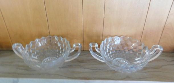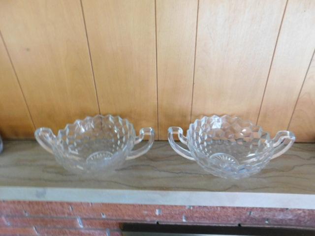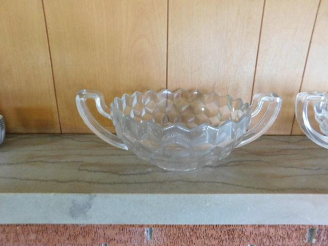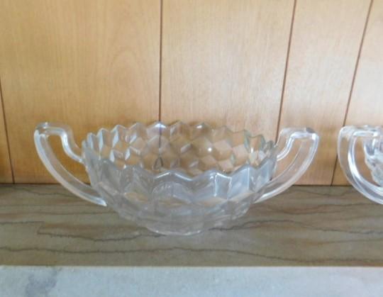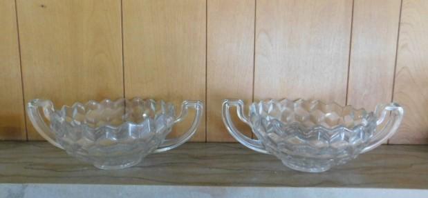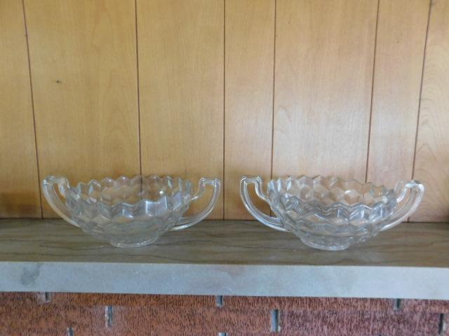 Set of Large Crystal Double Handle Glass Bowls 12"
