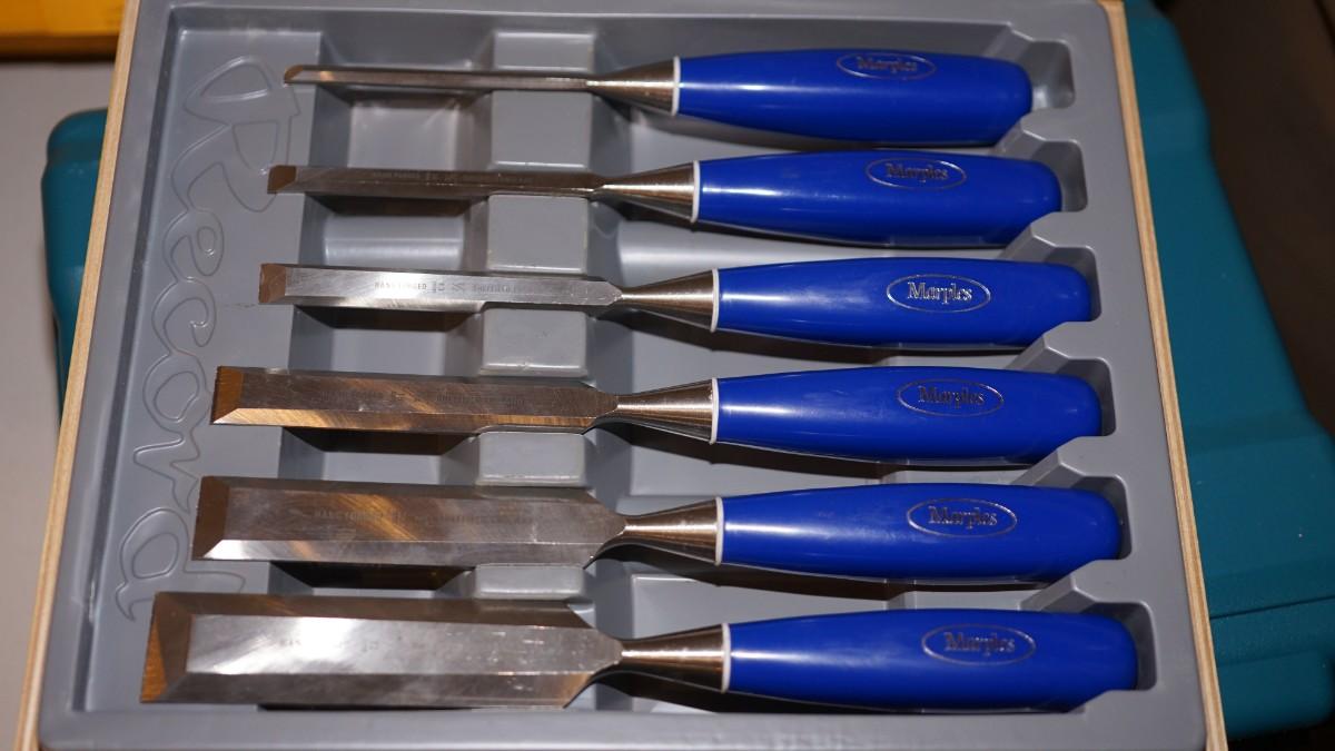 SET OF MARPLES WOOD CHISLES IN WOODEN DISPLAY BOX-SET OF SIX