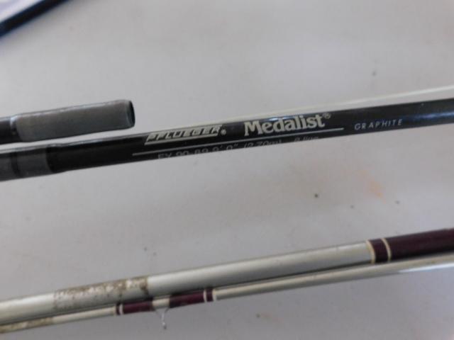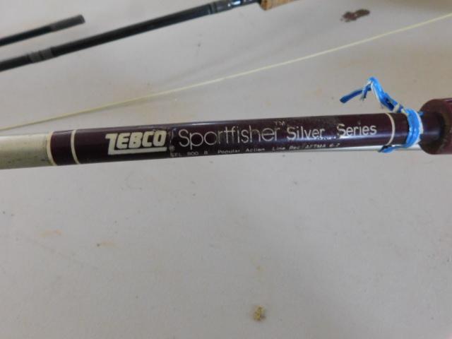 Set of Martin and South Bend Reels on Zebco Sportfisher Silver Rod and Pflueger Medalist Graphite Rod