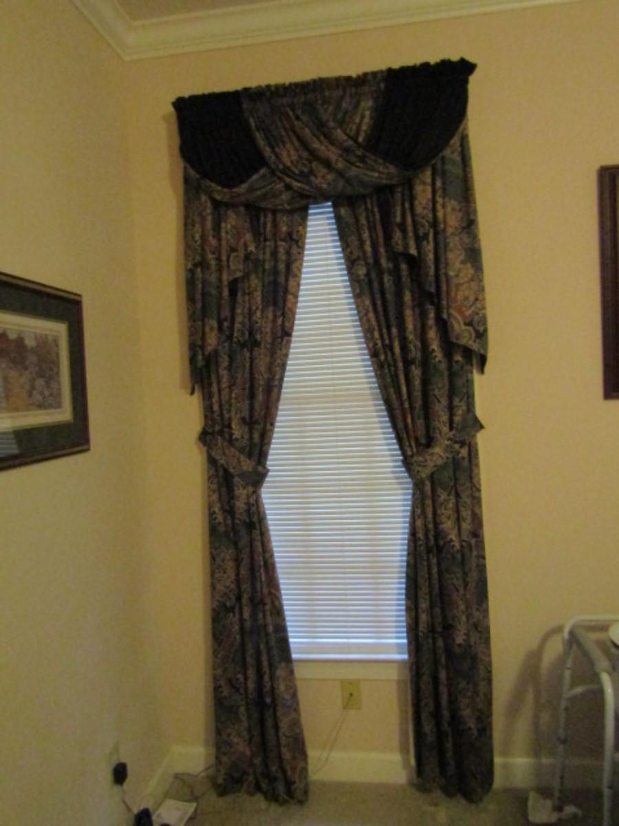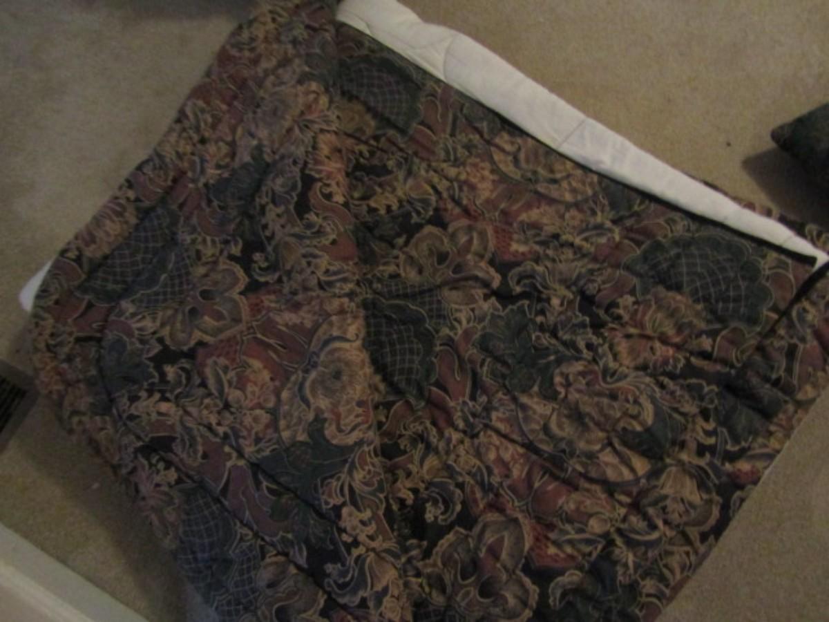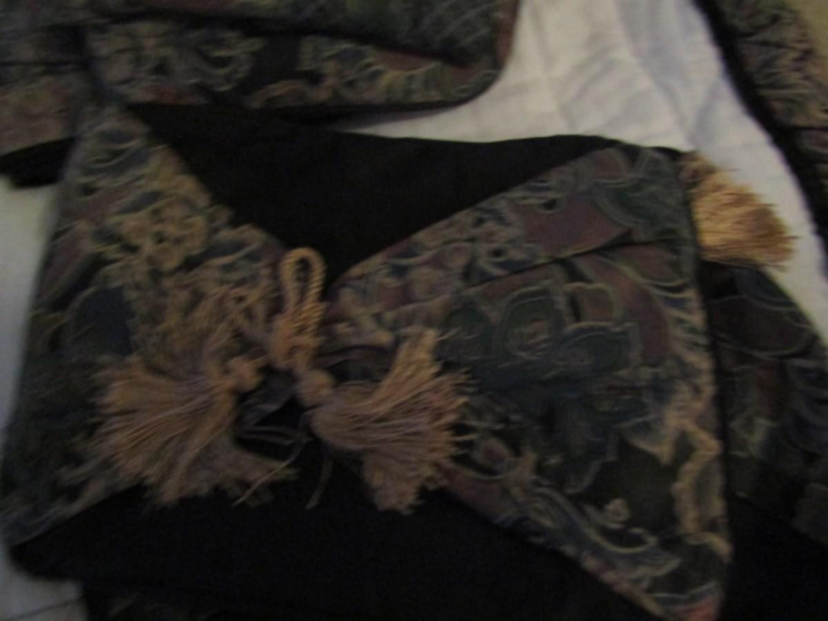 Set of Matching King-Sized Bedding, Lampshades and Drapes. Furniture and lamps not included.