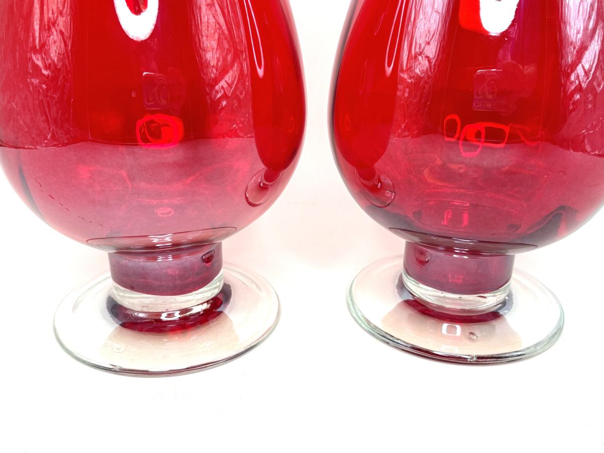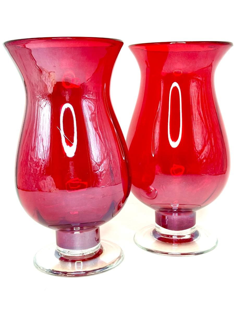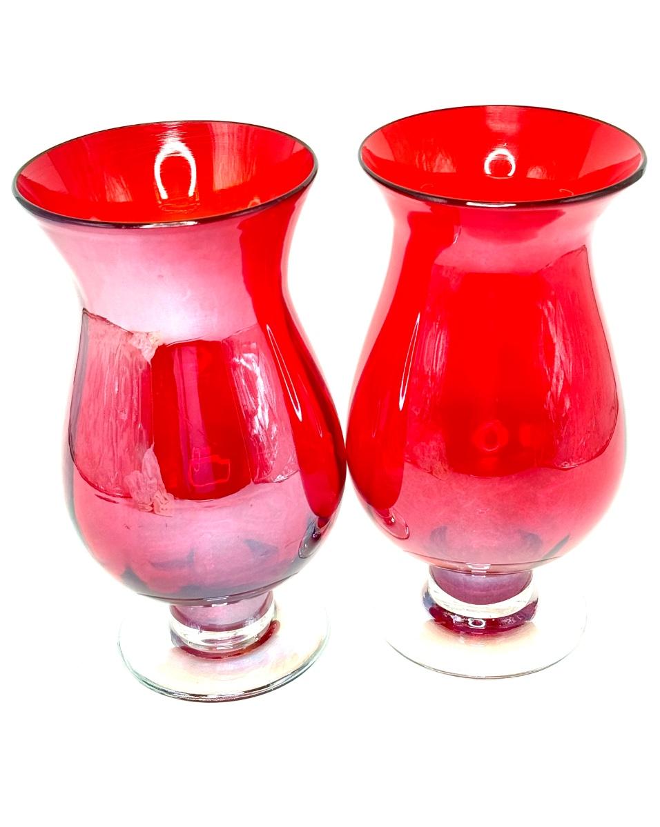 Set of 2 Vintage Ruby Red Crystal Vase/Candle Holders
