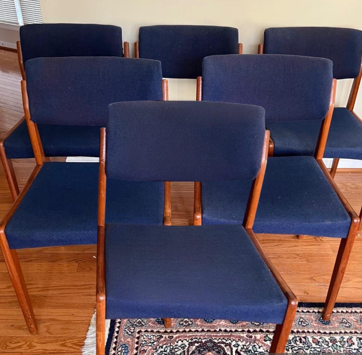 Set of 6 MCM Vintage Teak Upholstered Chairs