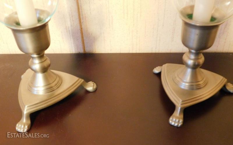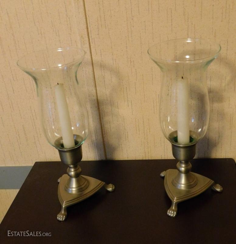 Set of Metal Base with Glass Globe Candle Holders in good condition.